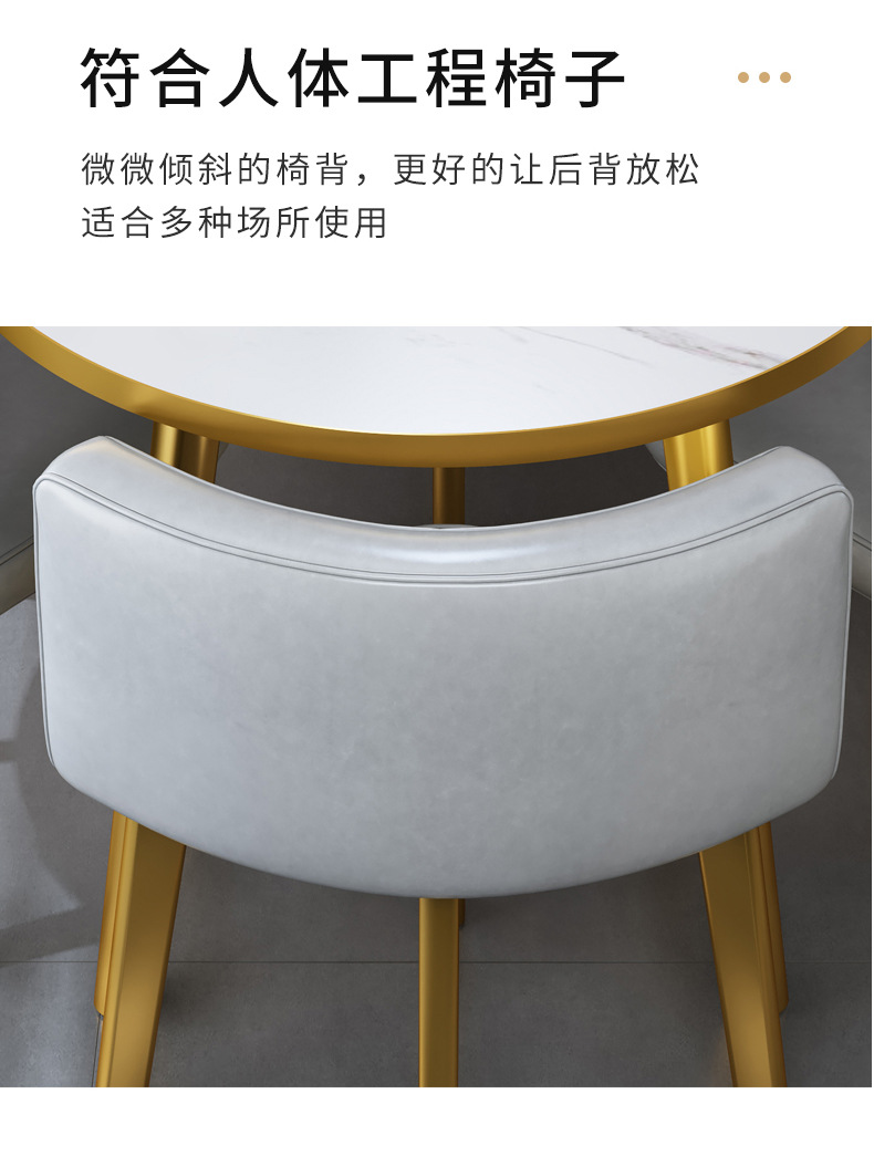 • 그레이 가죽 컬러 매칭 가죽 의자 80CM 모조 스톤 테이블 + 의자 4개