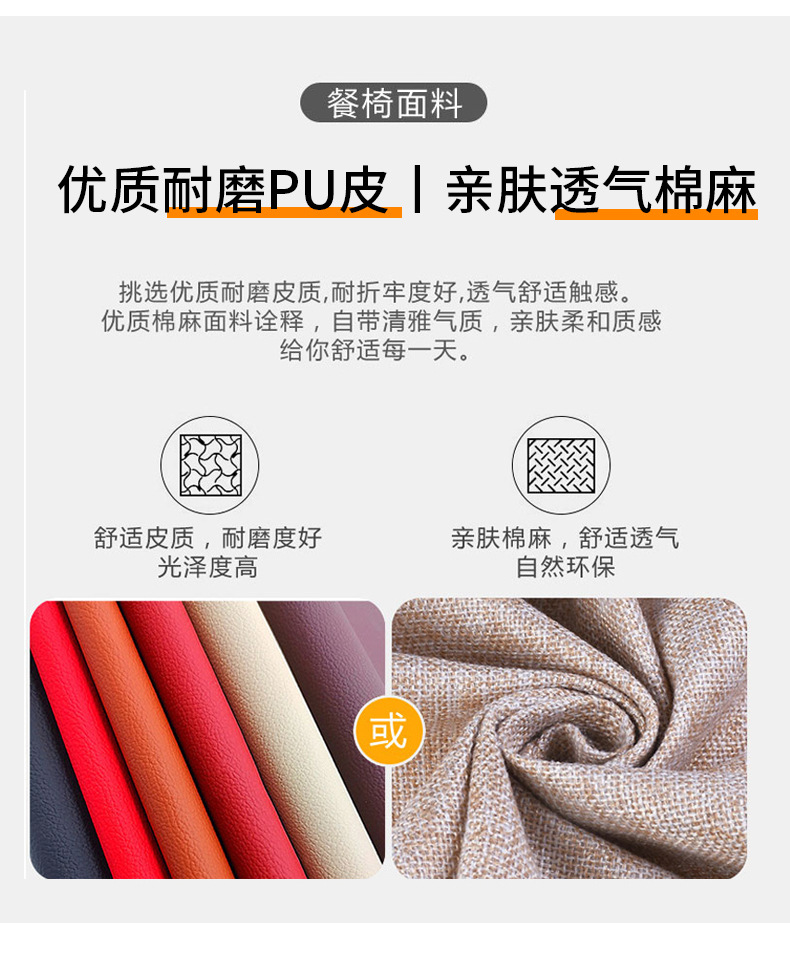• 오렌지 컬러 블록 가죽 의자 80CM 모조 돌 테이블 + 의자 4개