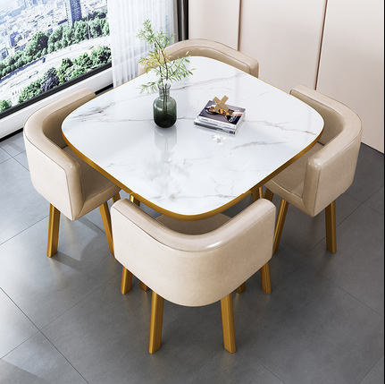 • 유백색 80CM 모조 대리석 골드 테두리 테이블과 의자 4개