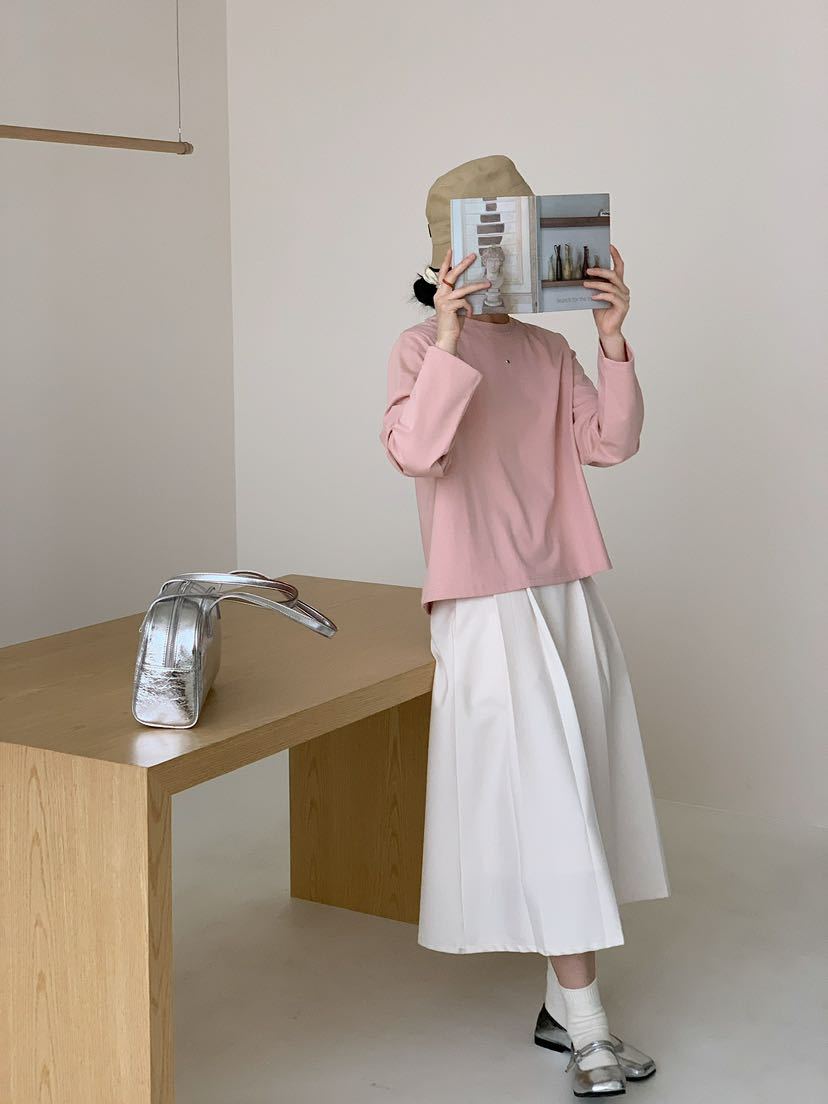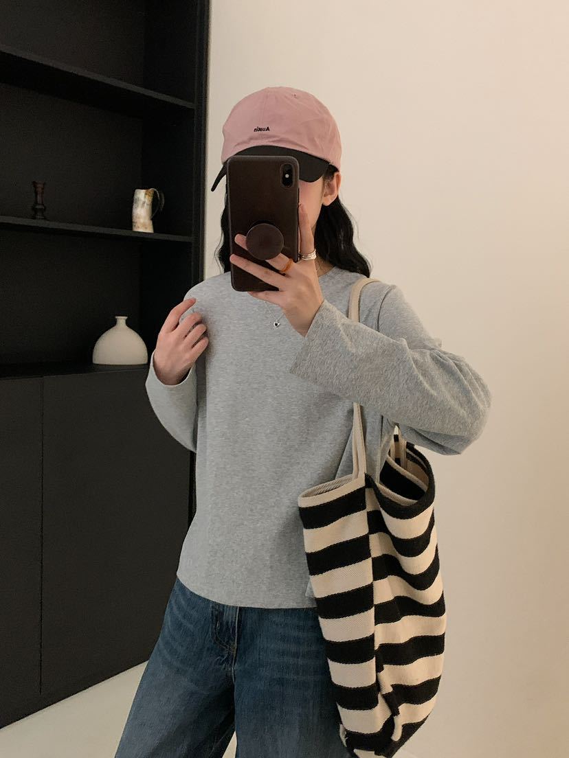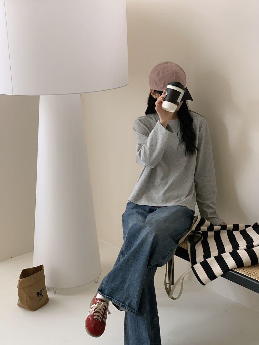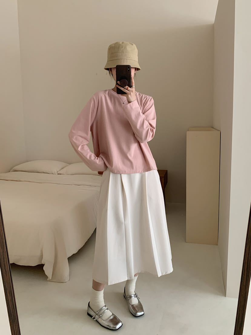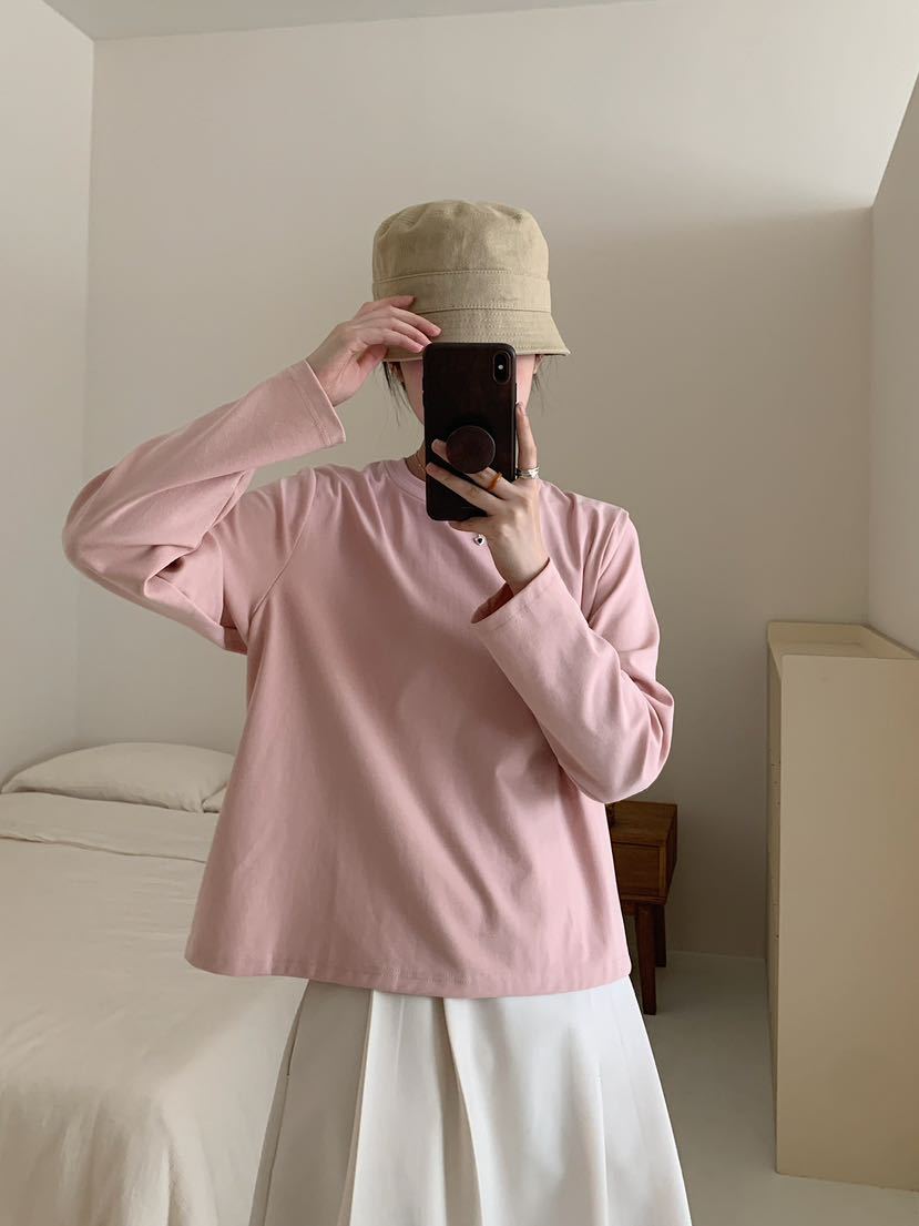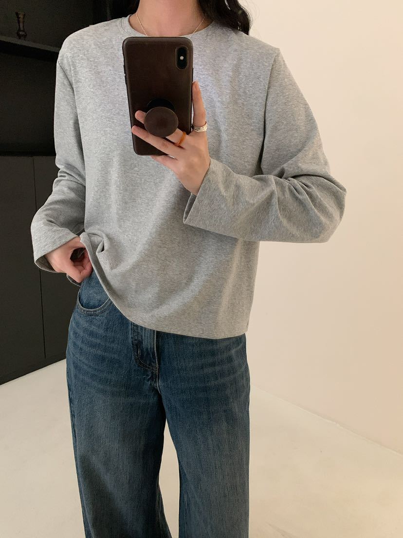 가을 2024 새로운 부드러운 피부 친화베이스 셔츠 단색 간단한 라운드 넥 올 매치 여성 풀오버 긴팔 티셔츠스토어 가기