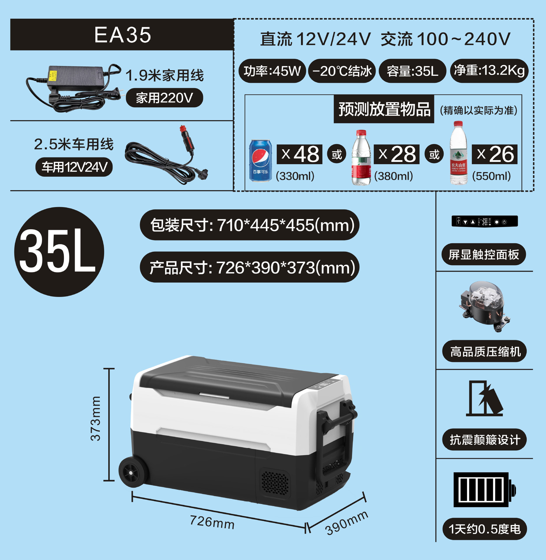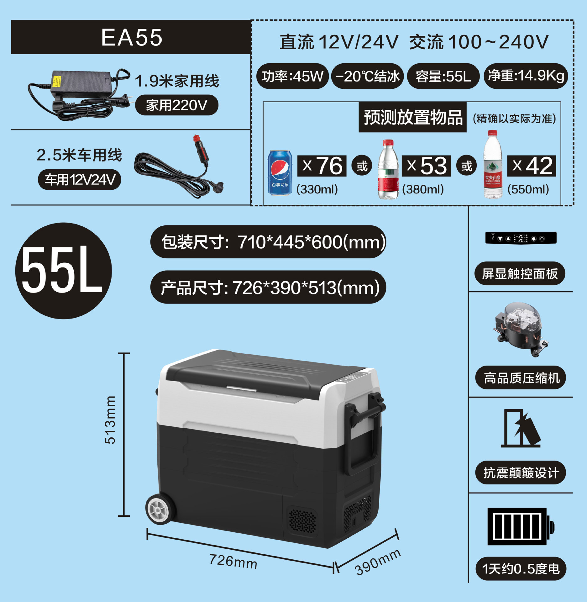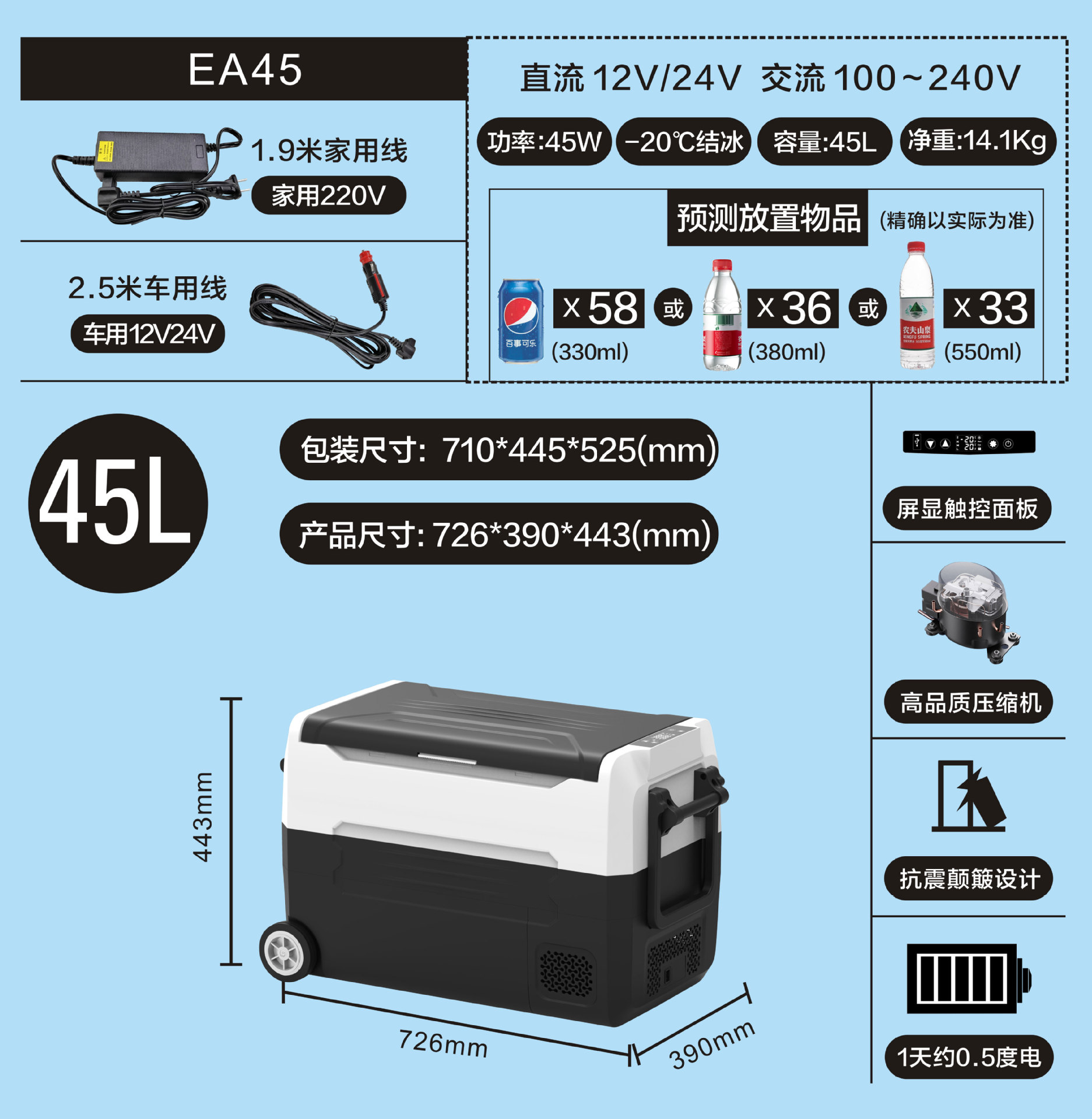 35/45/55L 자동차 가정용 이중 목적 압축기 자동차 냉장고 ≤45dB Amazon 국경 간 자동차 전용