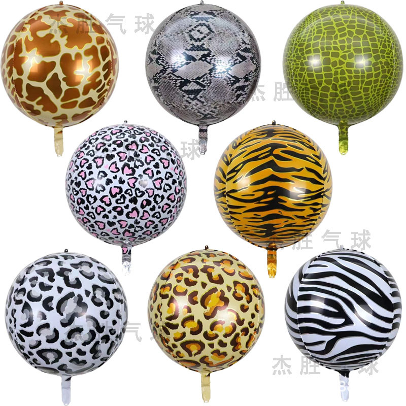 22 인치 4D 3 차원 동물 인쇄 공 알루미늄 풍선 호랑이 인쇄 레오파드 무늬 얼룩말 인쇄 생일 파티 장식 가스