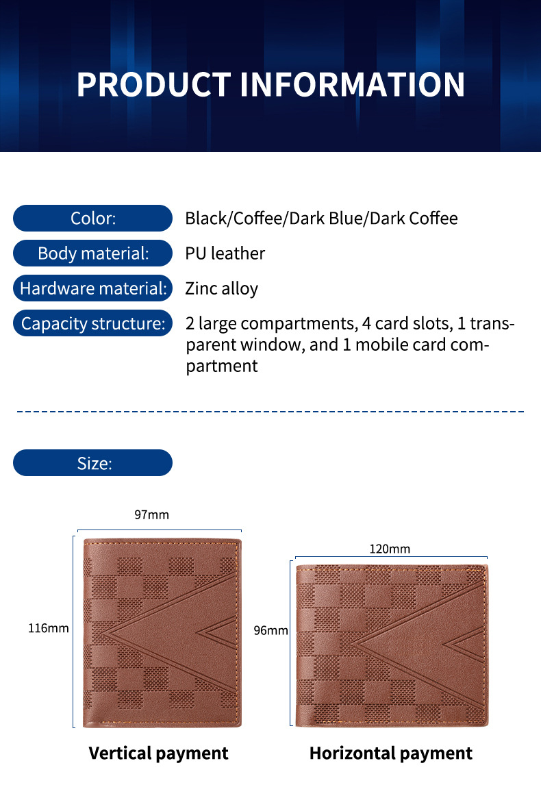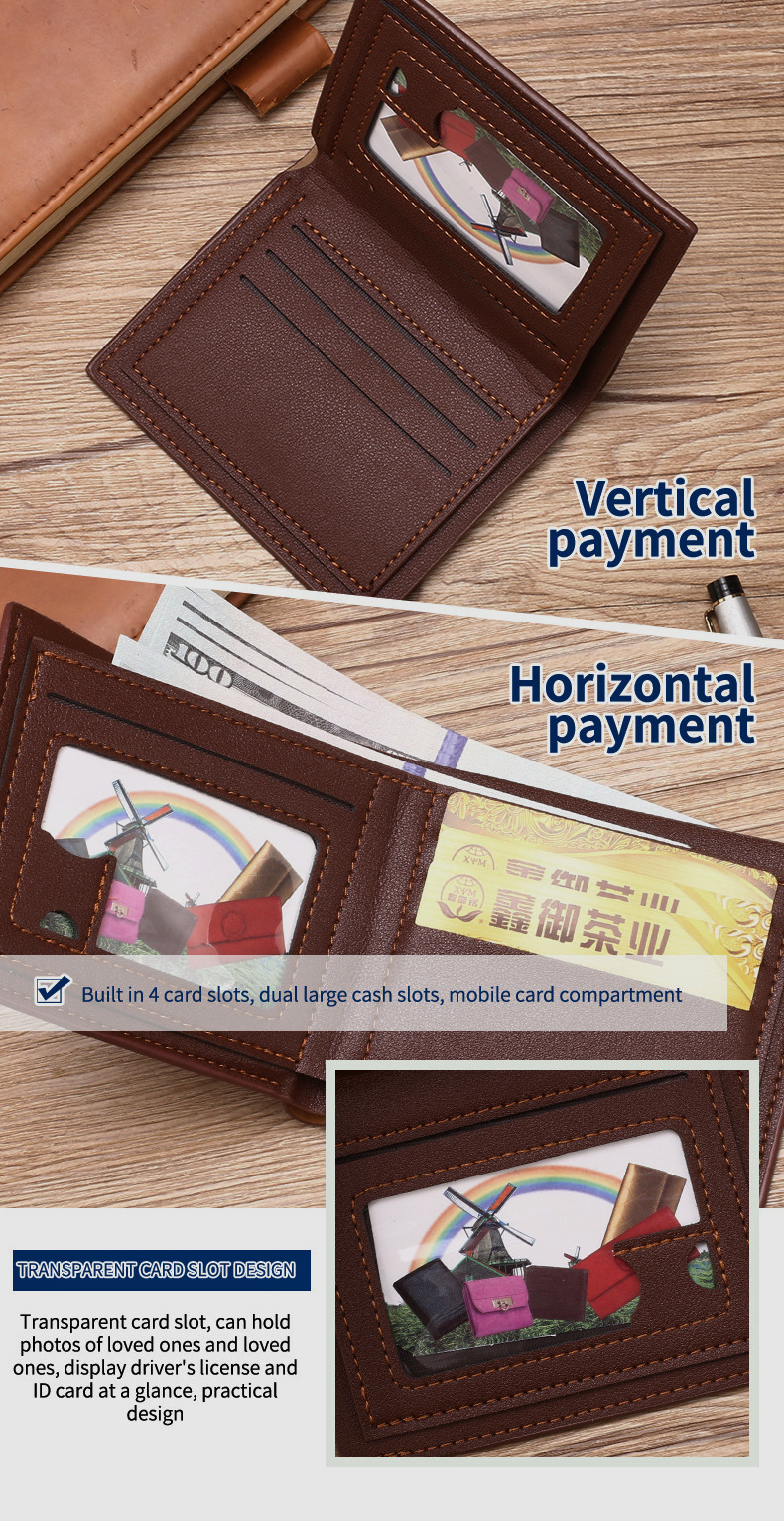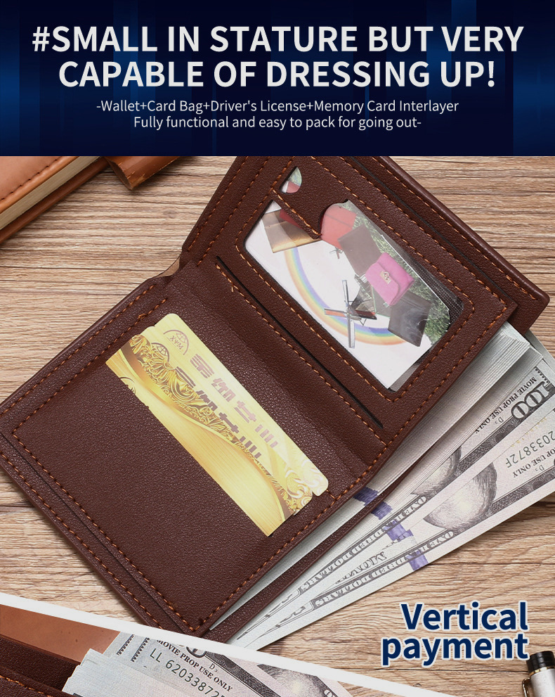 AliExpress 베스트셀러 비즈니스 남성 지갑 짧은 중년 및 젊은 수평 하이 엔드 라이트 럭셔리 멀티 카드 소형 지갑 도매스토어 가기