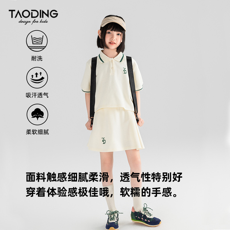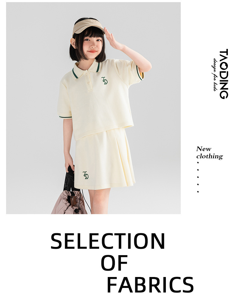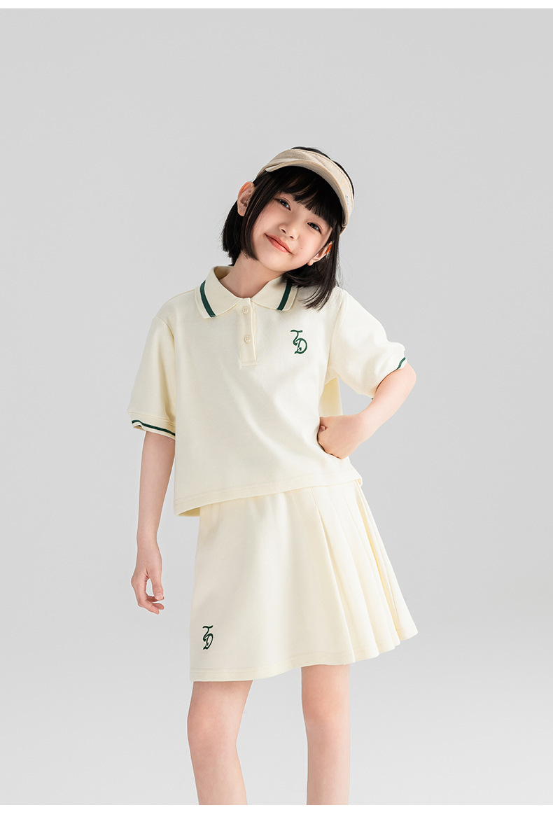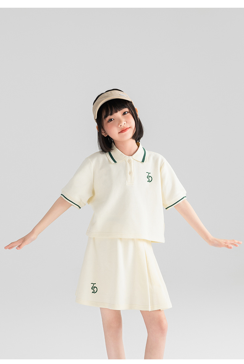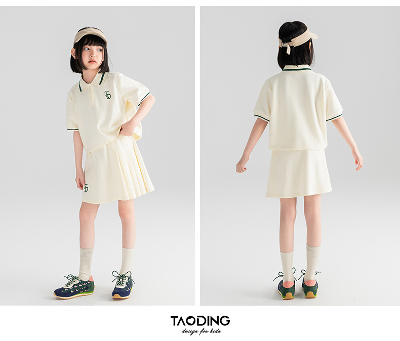 Amoy Town Girls 2024 여름 세트 새로운 미국 레트로 아카데미 스타일 대비 컬러 인쇄 폴로 셔츠 2 피스 세트스토어 가기