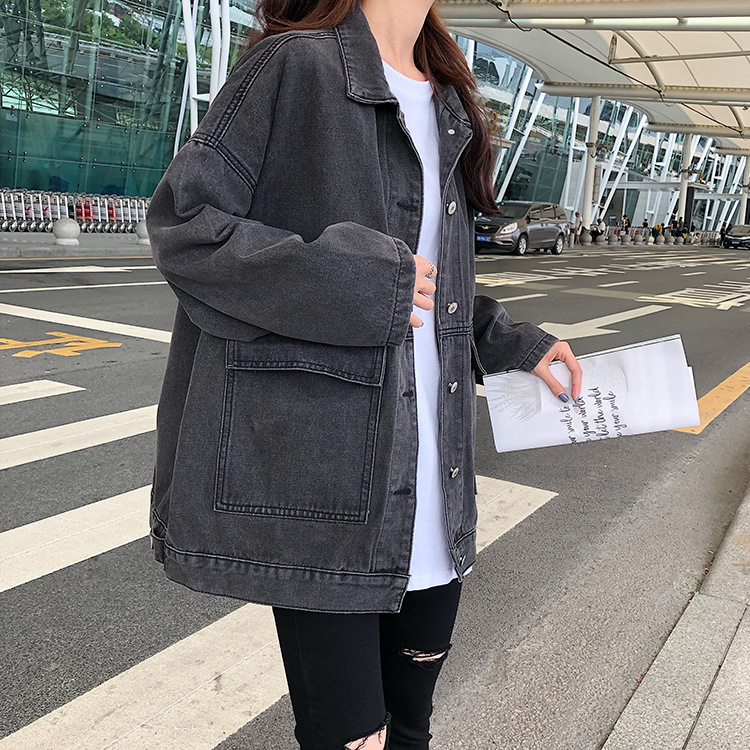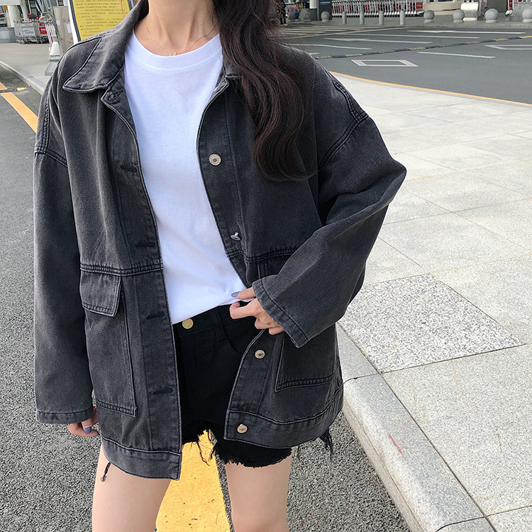2025 가을 겨울 데님 재킷 여성용 한국 스타일 학생 긴팔 레트로 코트 루즈핏 상의 한국 스타일 신상 다용도스토어 가기