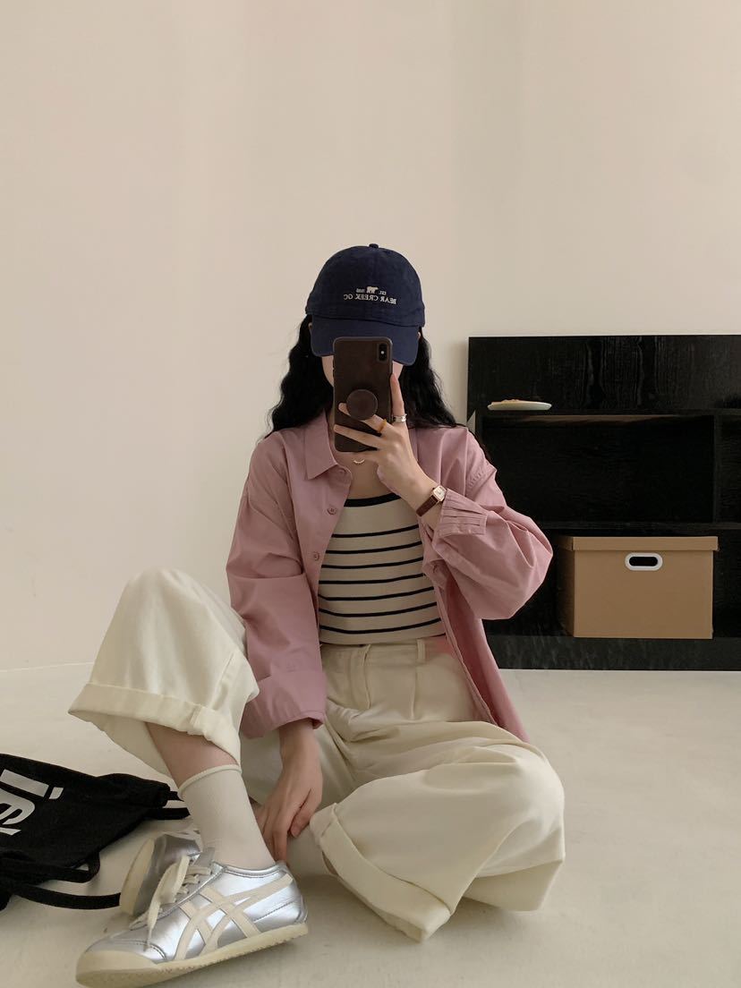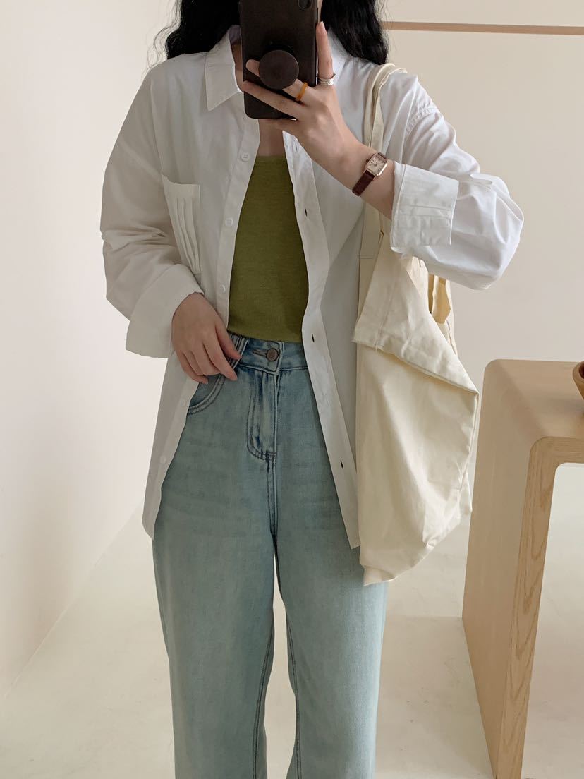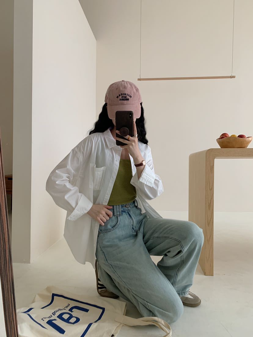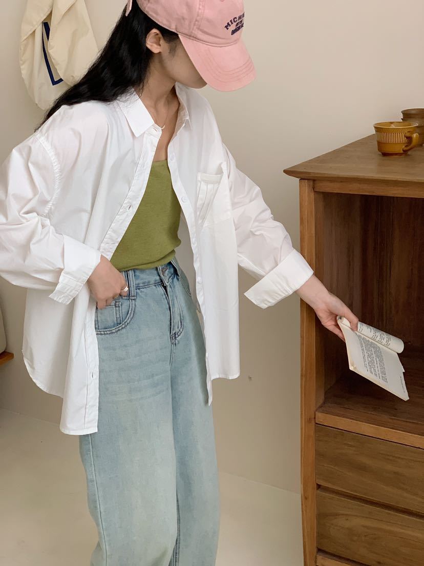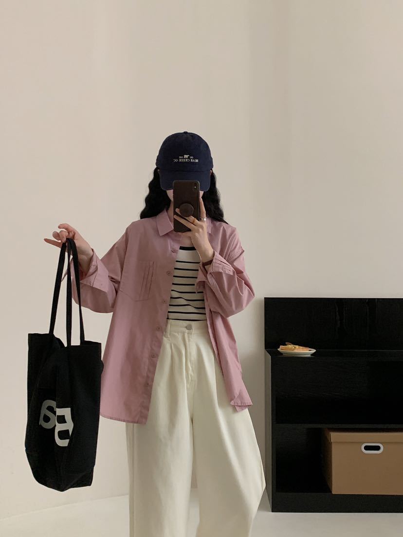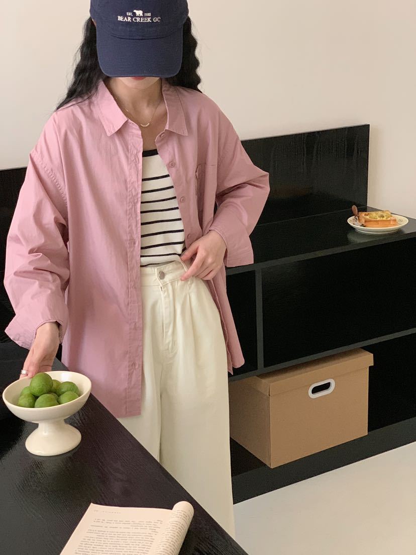 Net Edition 긴 소매 셔츠 2024 가을 간단한 유행 한국 스타일 옷깃 싱글 브레스트 올 매치 루즈 캐주얼 셔츠스토어 가기