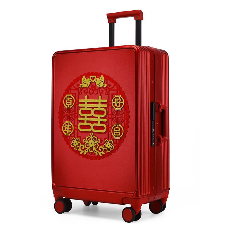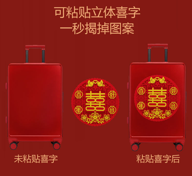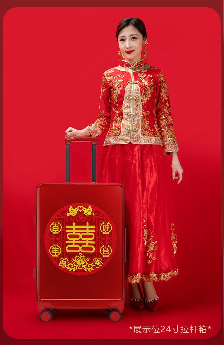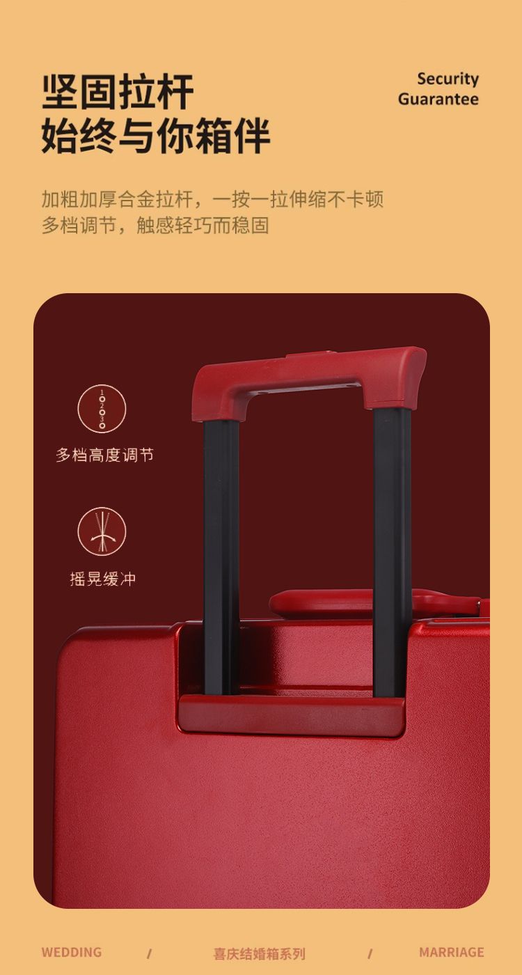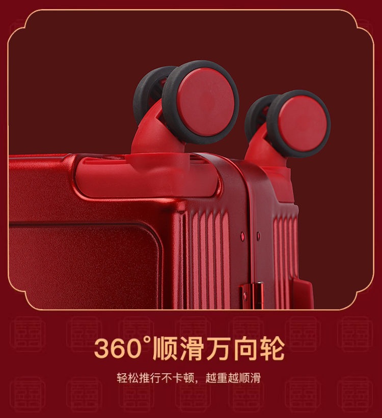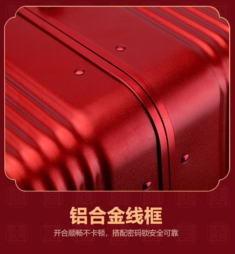 新娘结婚行李箱女酒红色拉杆箱复古陪嫁箱嫁妆旅行学生皮箱万向轮