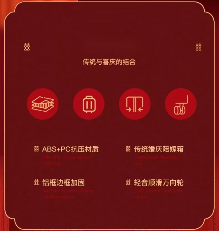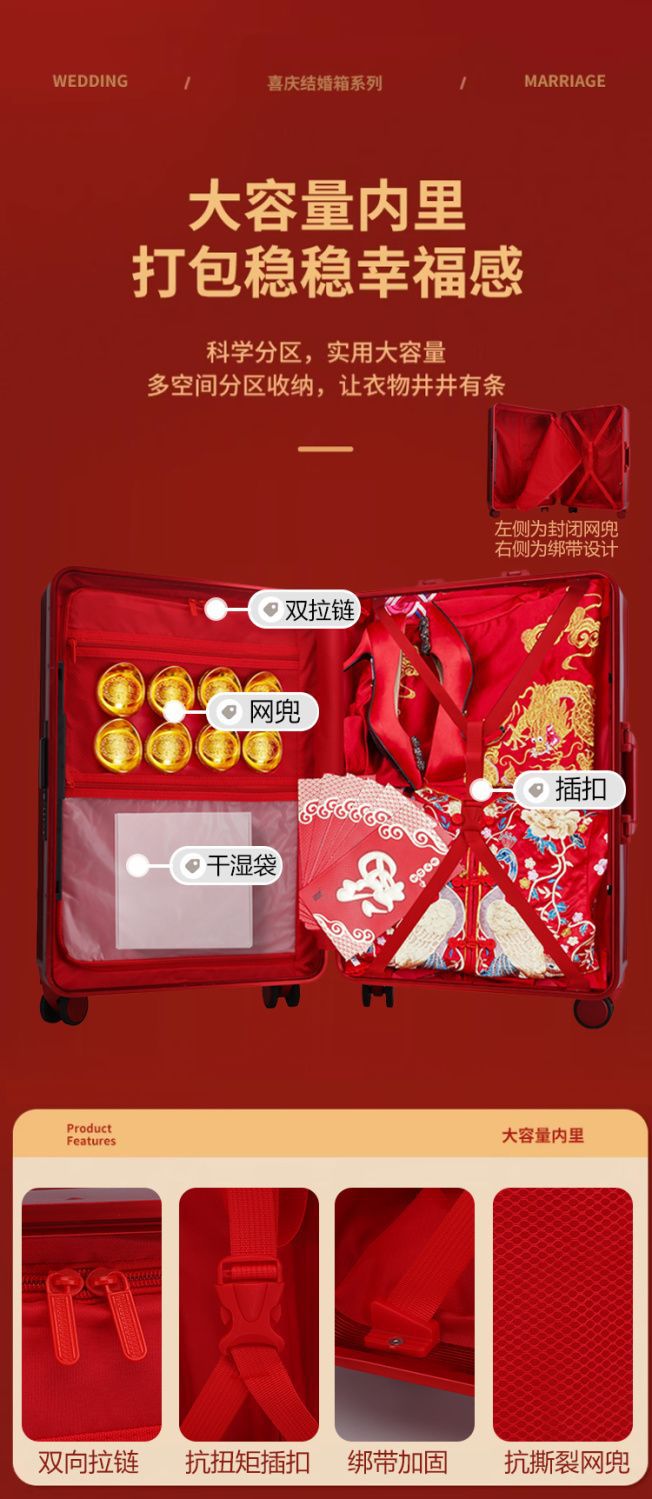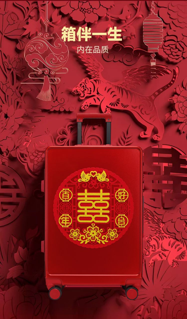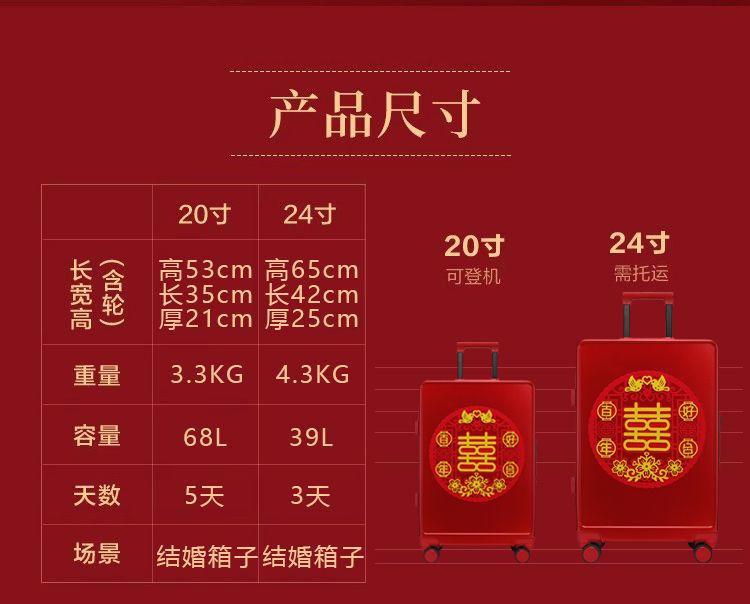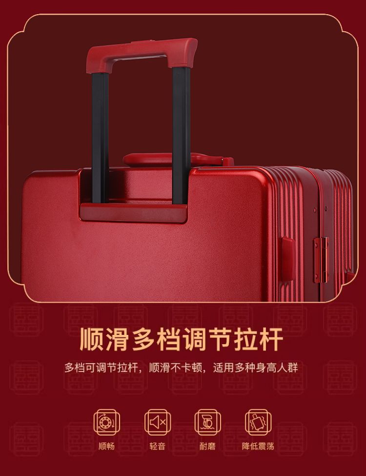 新娘结婚行李箱女酒红色拉杆箱复古陪嫁箱嫁妆旅行学生皮箱万向轮