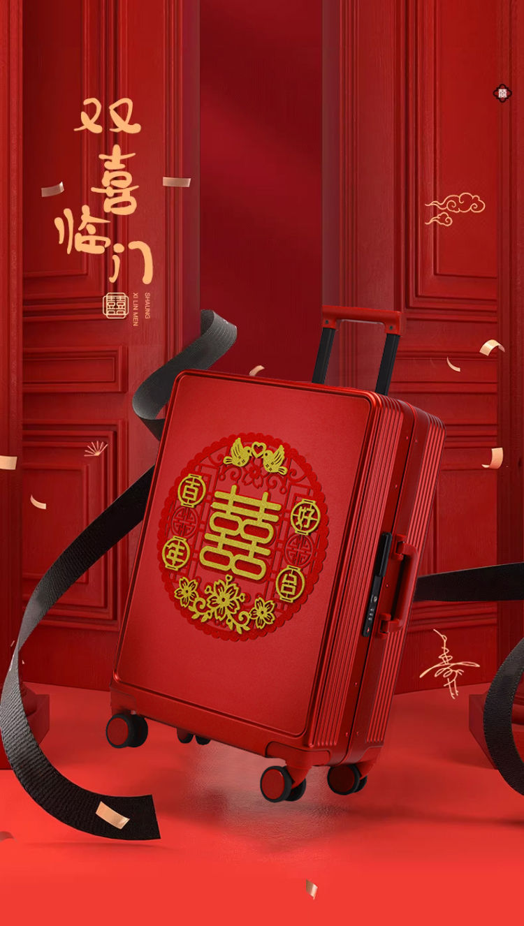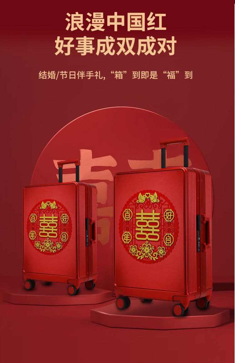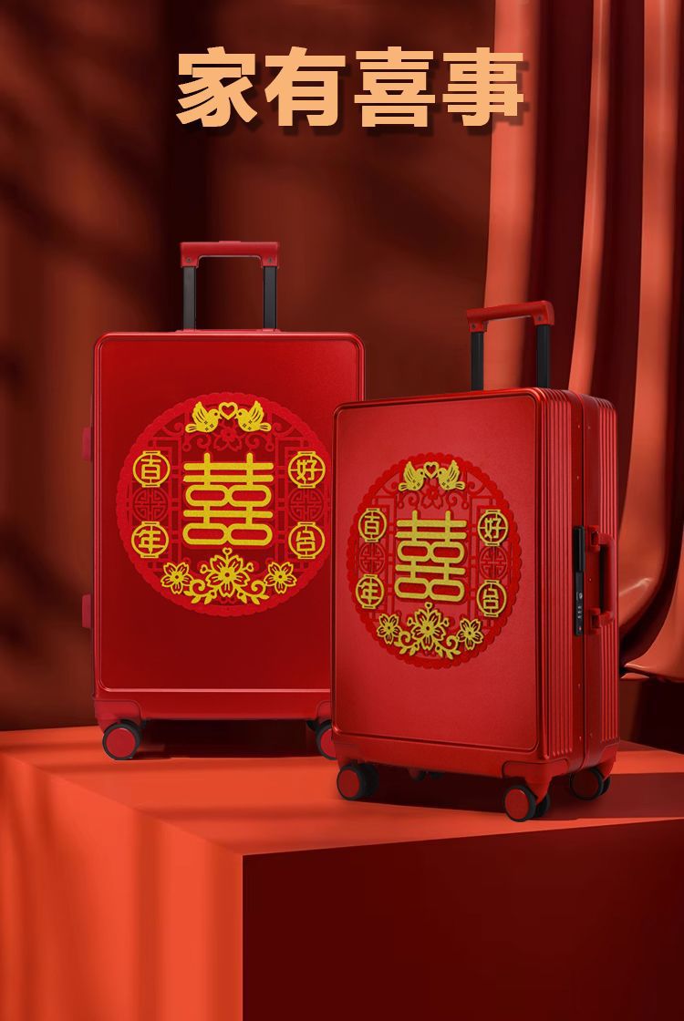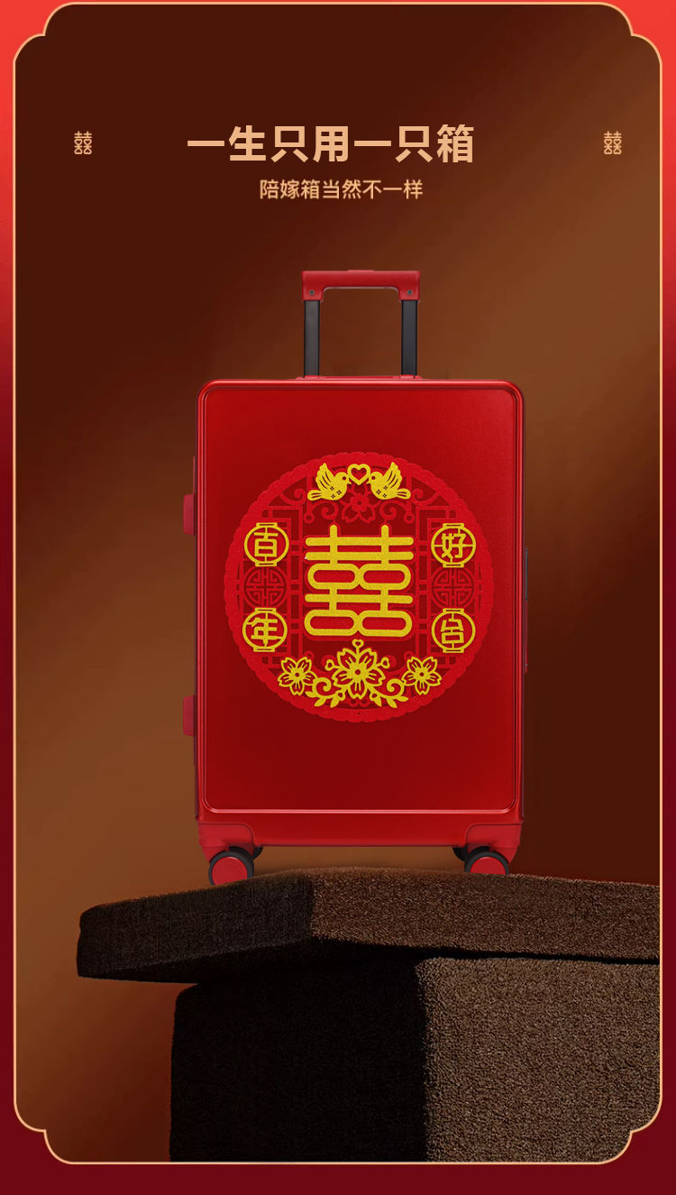 新娘结婚行李箱女酒红色拉杆箱复古陪嫁箱嫁妆旅行学生皮箱万向轮스토어 가기