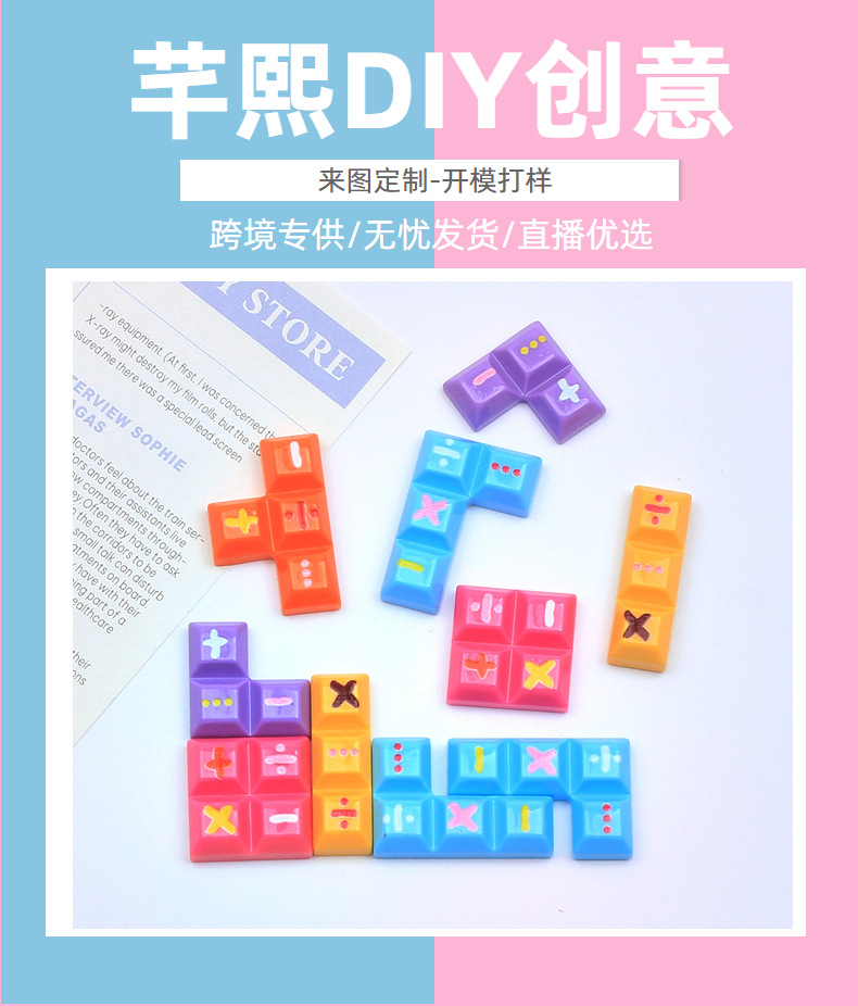 수지 만화 도매 액세서리 DIY 수제 구멍 신발 버클 크림 접착제 클립 4 산술 퍼즐 사각형스토어 가기