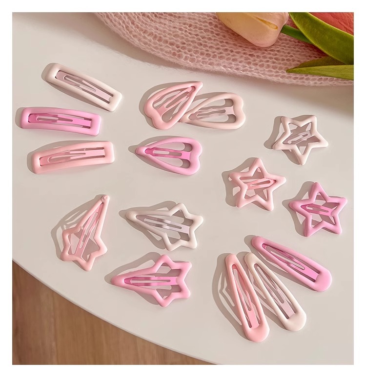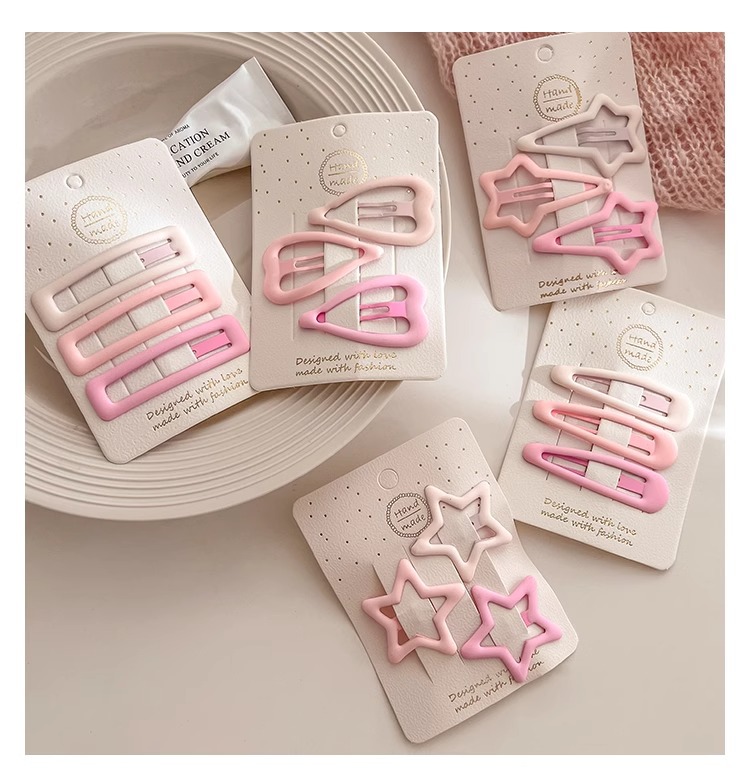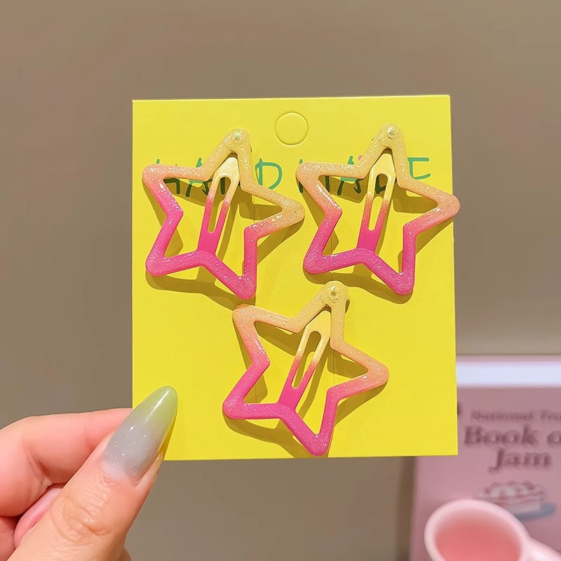 핑크 귀여운 스타 작은 머리핀 여성용 사이드 헤어 클립 어린이 사랑 아기 클립 깨진 머리 머리핀 머리말 여름