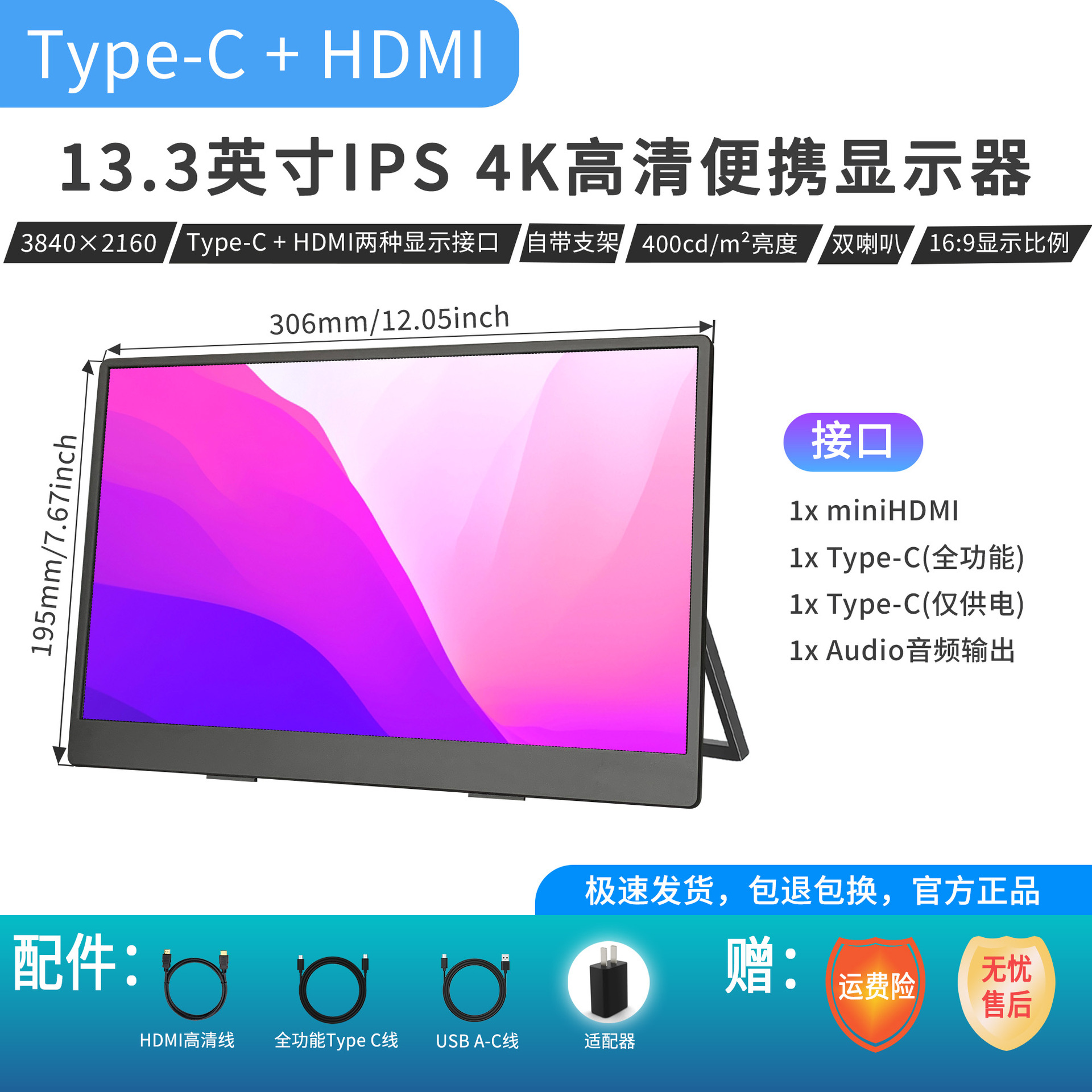 13.3 "4K 초고화질 디스플레이 터치 휴대용 스크린 브래킷 외부 휴대 전화 컴퓨터 확장 서브 스크린스토어 가기