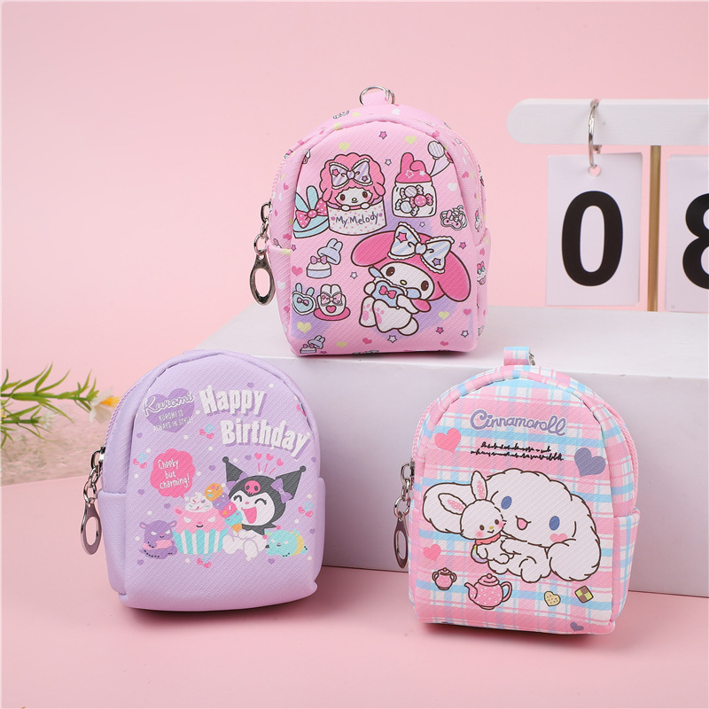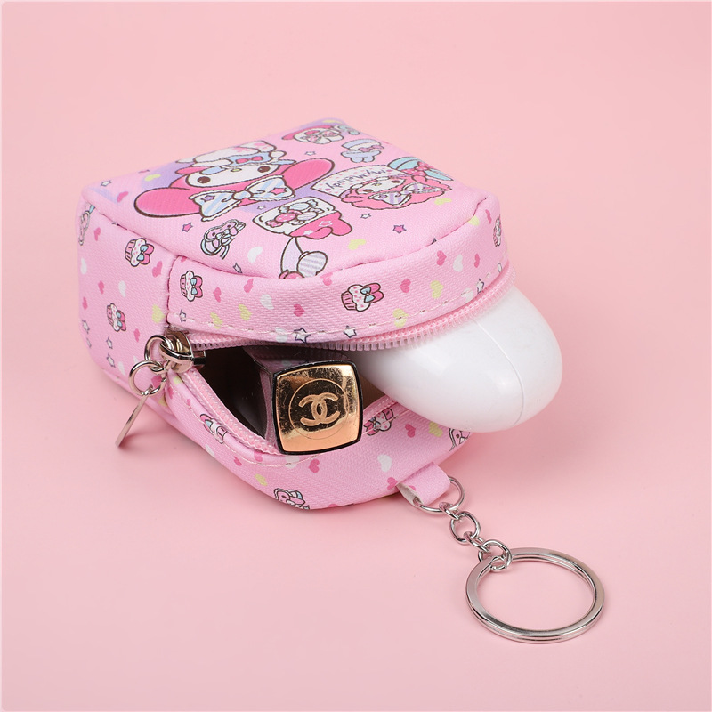 한국어 버전 귀여운 Kuromi 동전 지갑 만화 가죽 방수 휴대용 지갑 립스틱 키 미니 저장 가방