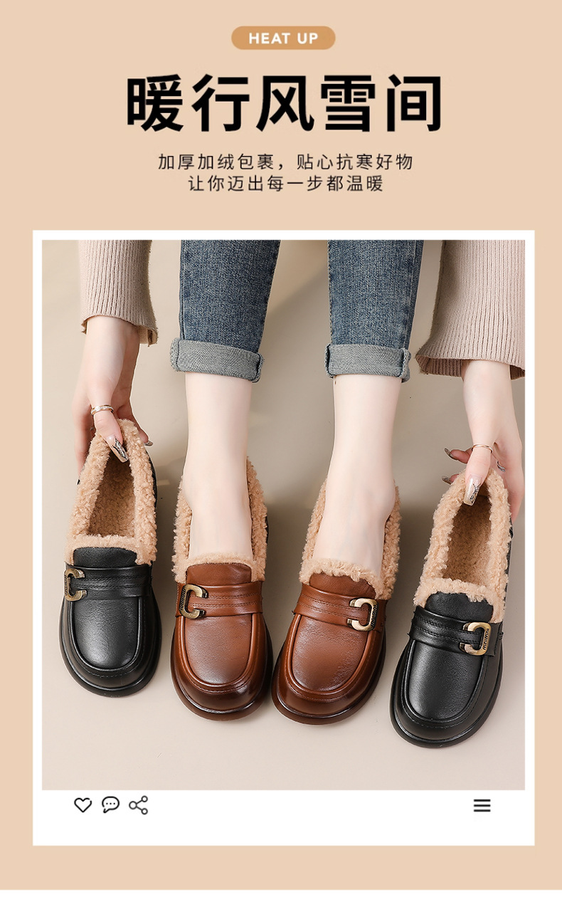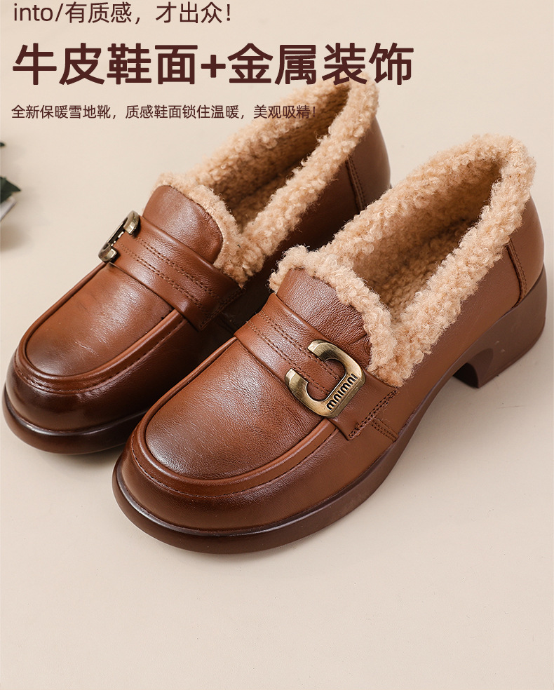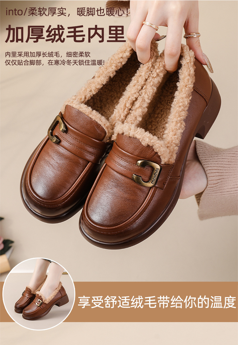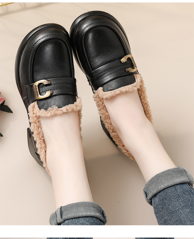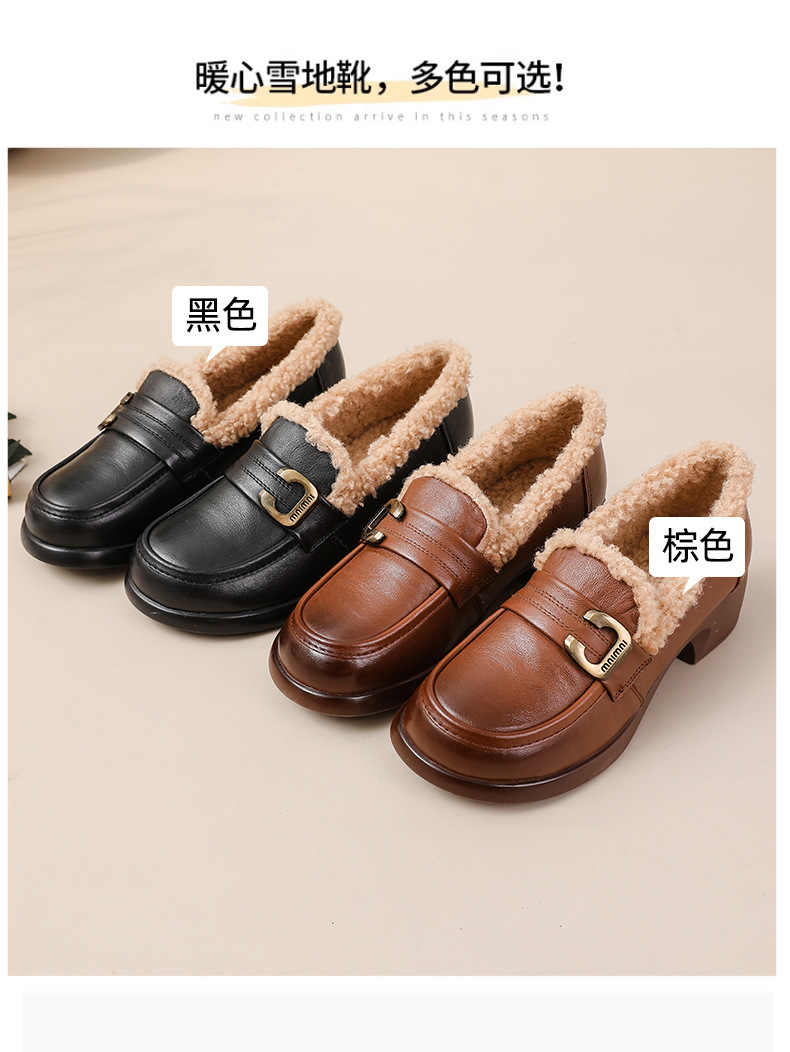 1층 소가죽 모피 신발, 미드힐 로퍼, 가죽 신발, 천연 가죽 두꺼운 굽 단화, 여성용 하이힐, 두꺼운 밑창, 겨울용 플러스 벨벳스토어 가기