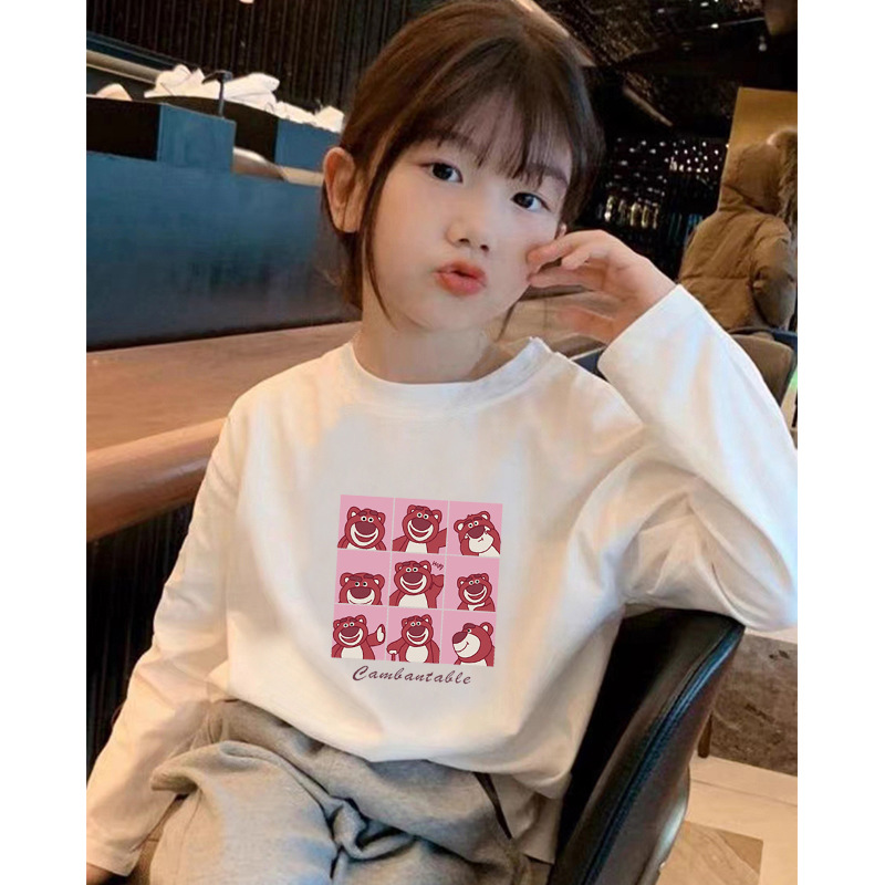사랑스러운 스타일 코튼 긴팔 크루 넥 티셔츠 대형 어린이 2024 새로운 소녀 옷 봄과 가을베이스 셔츠