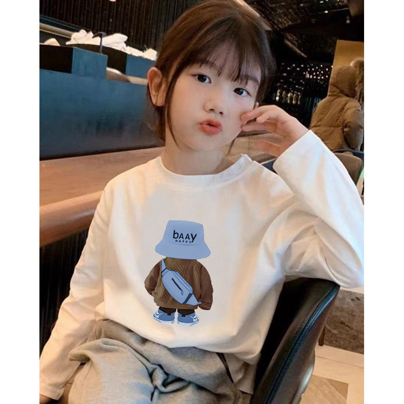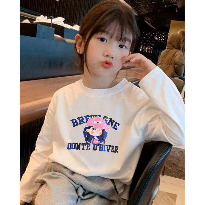 사랑스러운 스타일 코튼 긴팔 크루 넥 티셔츠 대형 어린이 2024 새로운 소녀 옷 봄과 가을베이스 셔츠스토어 가기