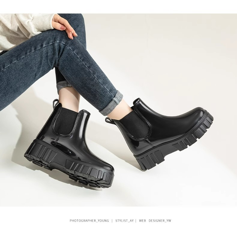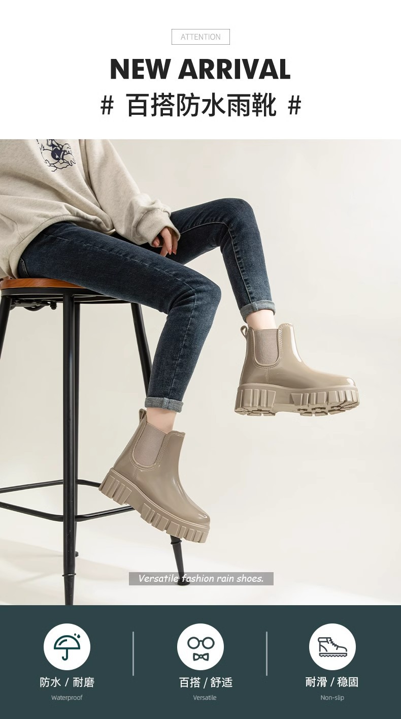 두꺼운 밑창 중간 배럴 장화 여성의 2024 새로운 방수 미끄럼 방지 성인 물 신발 경량 고무 신발 유행 인터넷 유명한 장화스토어 가기