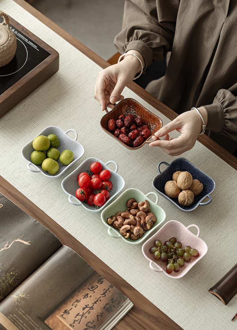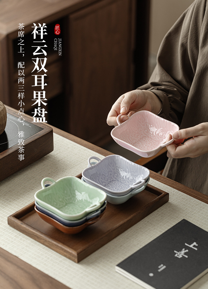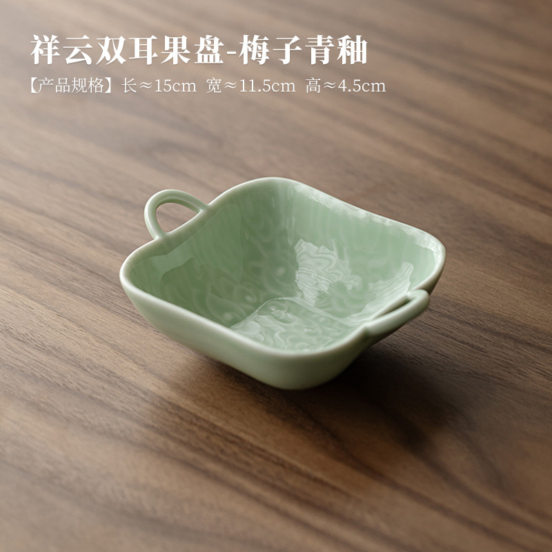 • Xiangyun 이중 귀 과일 접시 - 자두 녹색 유약