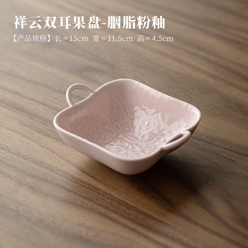 • Xiangyun 이중 귀 과일 접시 - 루즈 핑크 유약