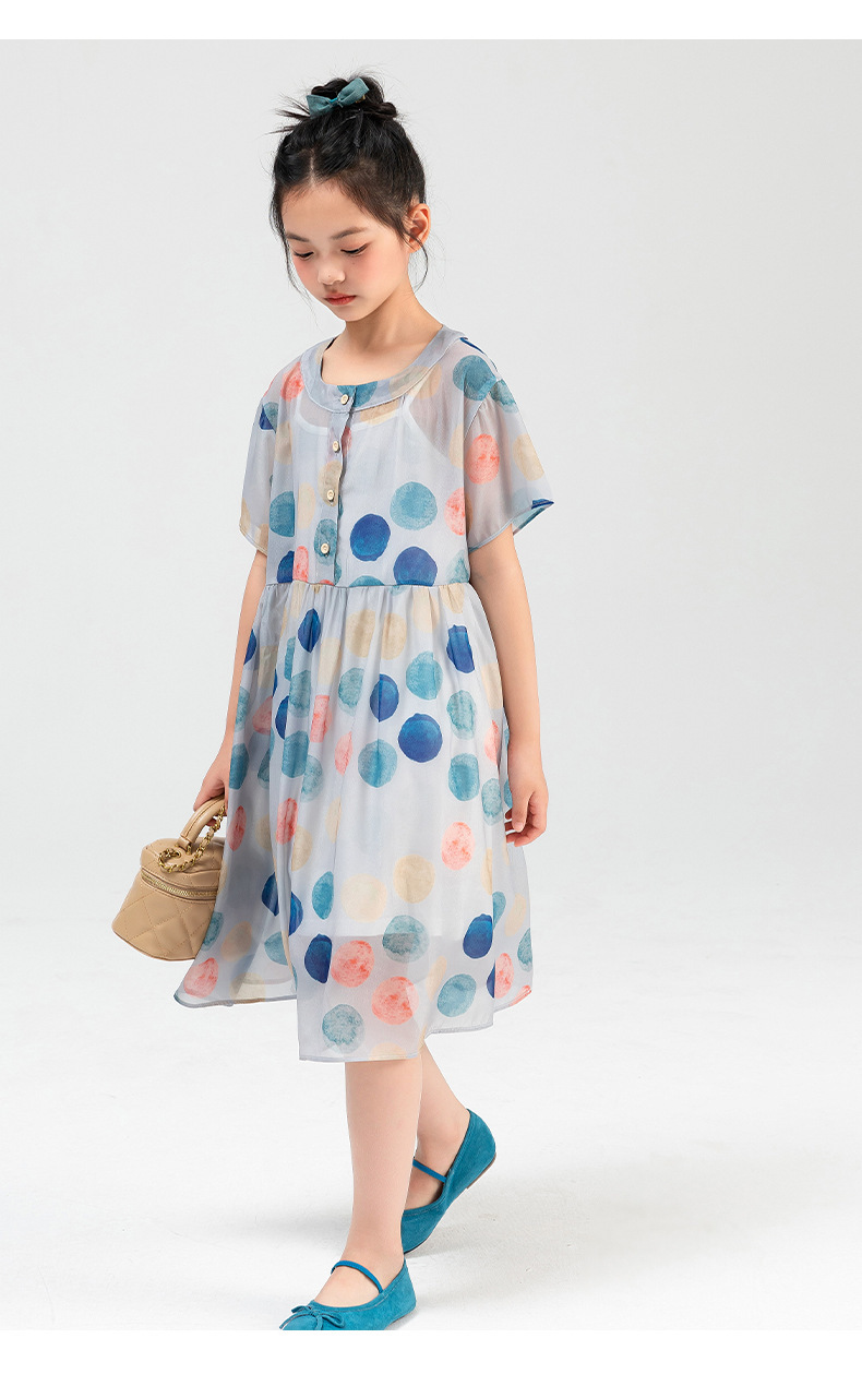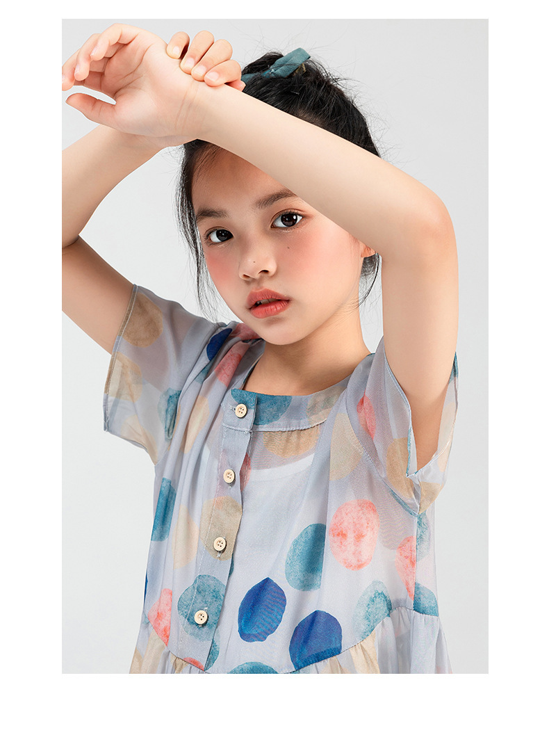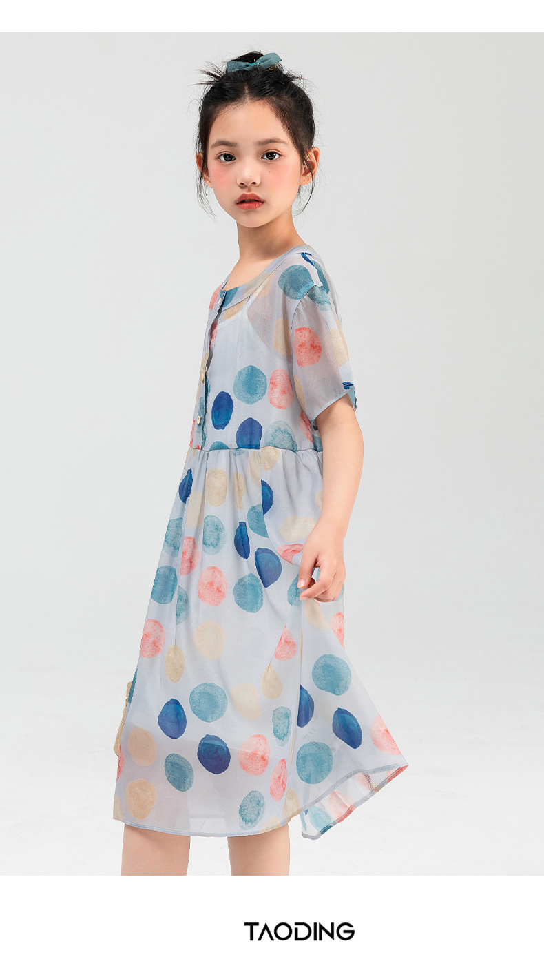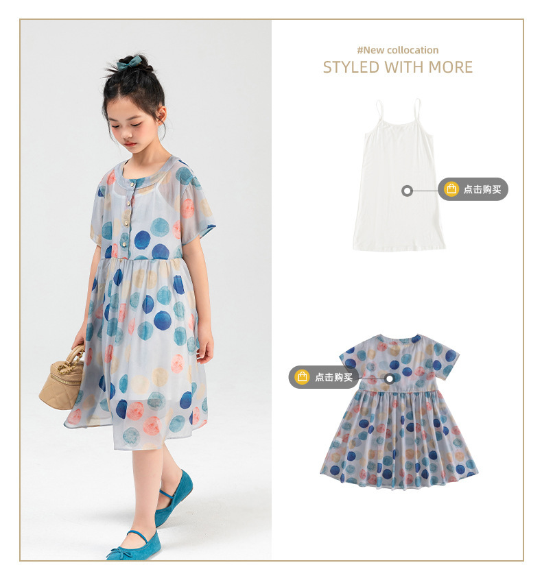Amoy Town Girls, 2024 년 여름 세트 원피스 큰 아이들 쿨 센스 도트 쉬폰 스커트 민소매 슬링 투피스 세트스토어 가기