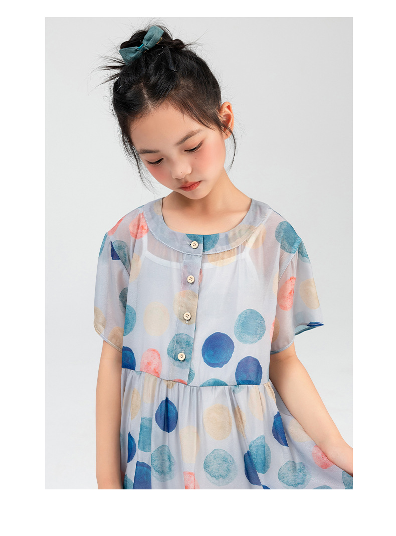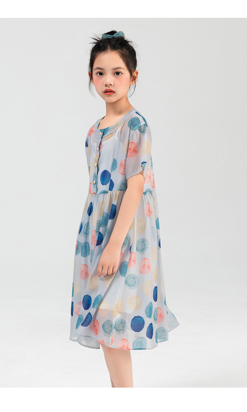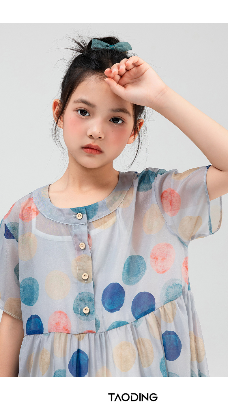 Amoy Town Girls, 2024 년 여름 세트 원피스 큰 아이들 쿨 센스 도트 쉬폰 스커트 민소매 슬링 투피스 세트스토어 가기
