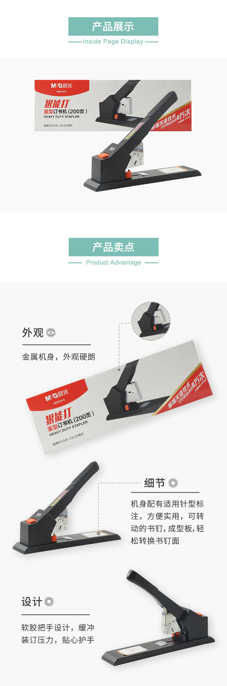 Chenguang 무거운 스테이플러 대형 스테이플러 두꺼운 레이어 재생하기 어려운 재무 문서 사무실 200 페이지 스테이플러