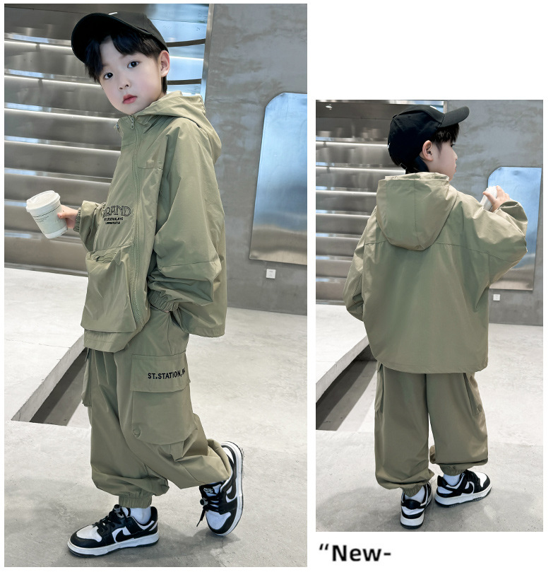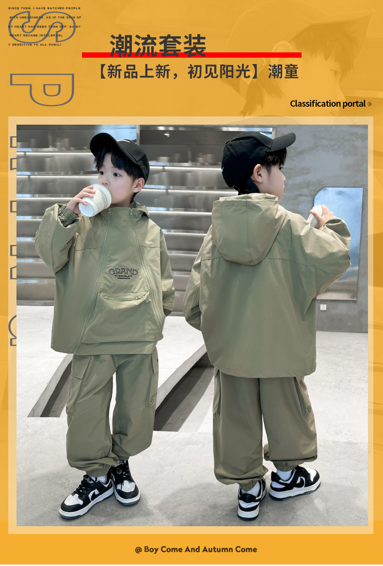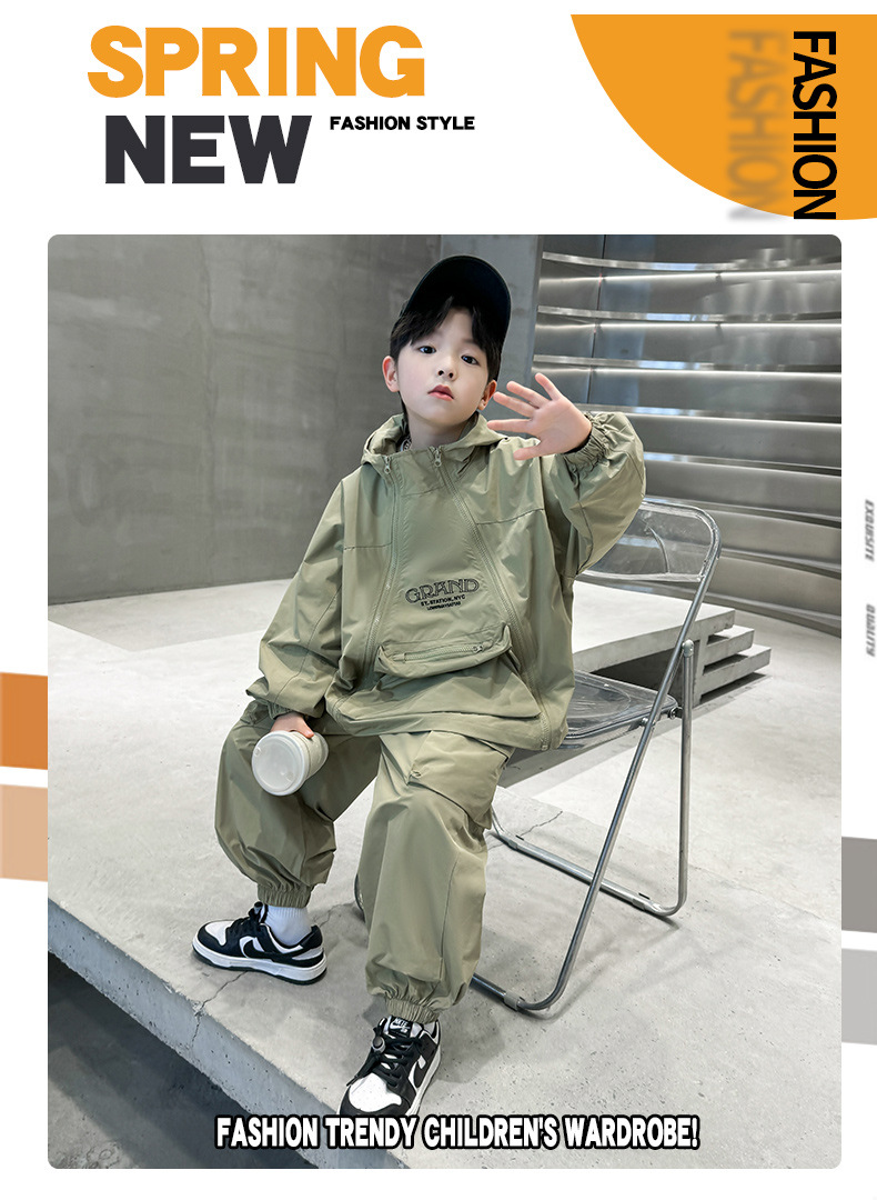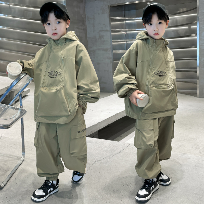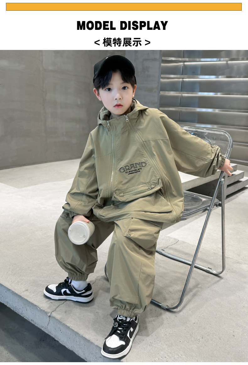 남학생 세트 2024 년 봄 · 가을 신작 빅스트리트 어린이 더블 지퍼 솔리드 컬러 트렌디 스포츠웨어 2 개스토어 가기