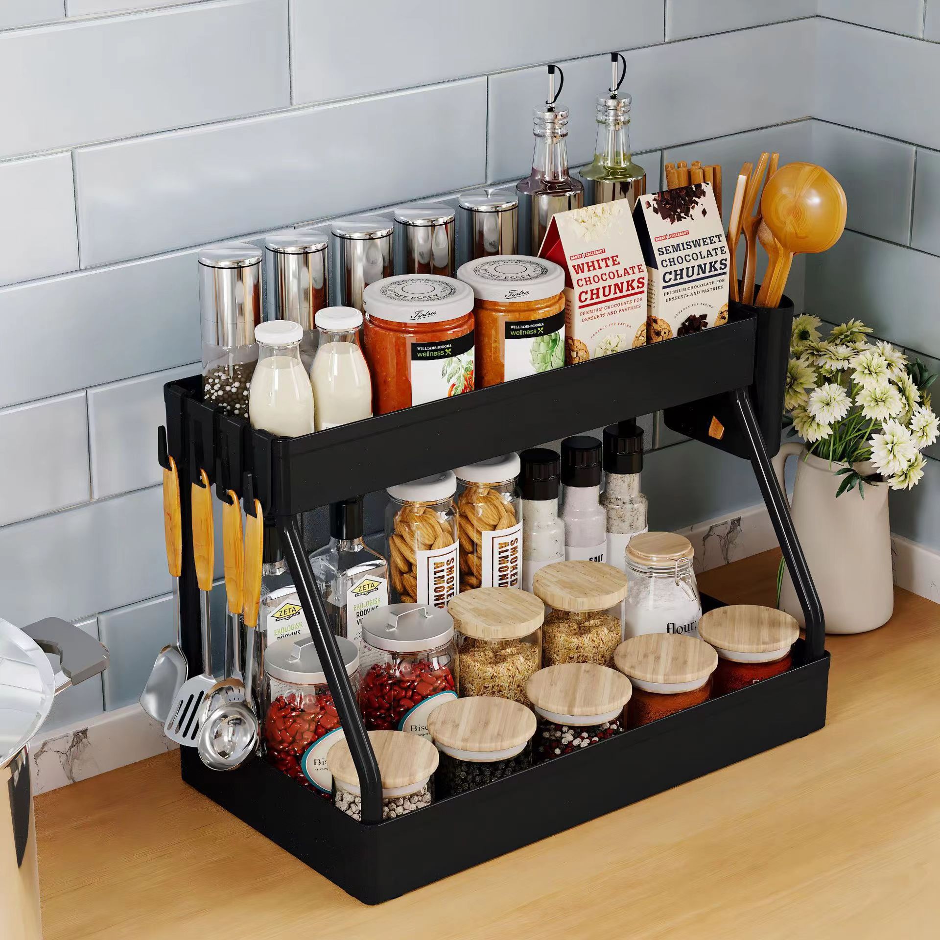 더블 레이어 풀 아웃 스토리지 랙 주방 싱크대 분해 및 조립 저장 조리대 향신료 및 조미료 다목적 스토리지 랙 공장스토어 가기