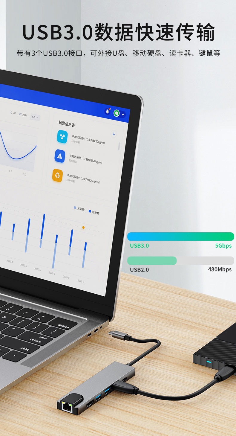 네트워크 카드가있는 6 대 1 6in1 도킹 스테이션 Type-c HUB 노트북 전화 스위치 화면 도킹 스테이션