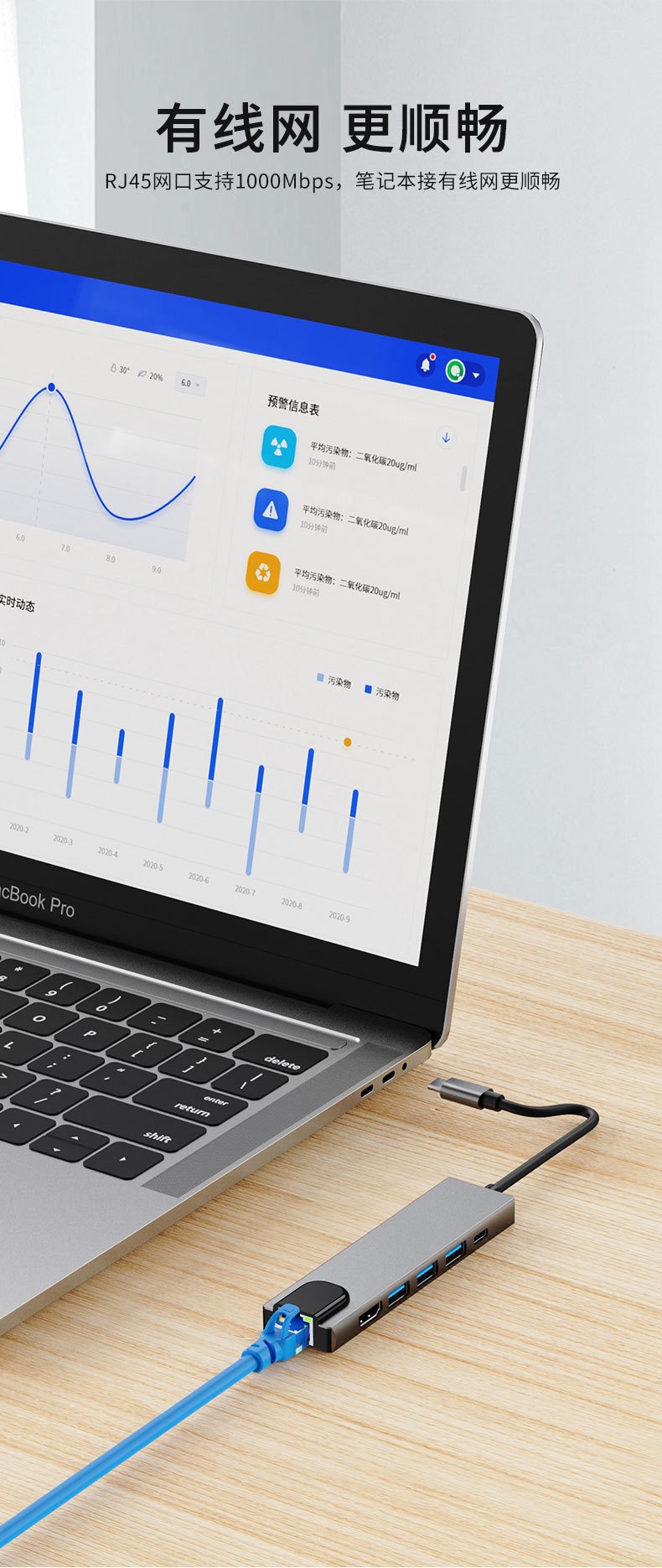네트워크 카드가있는 6 대 1 6in1 도킹 스테이션 Type-c HUB 노트북 전화 스위치 화면 도킹 스테이션스토어 가기