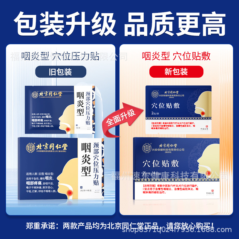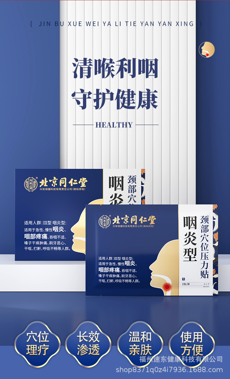 베이징 Tongrentang 인두염 유형 목 지압 패치 편도 인후통 인후통 건조 가려움증 통증스토어 가기