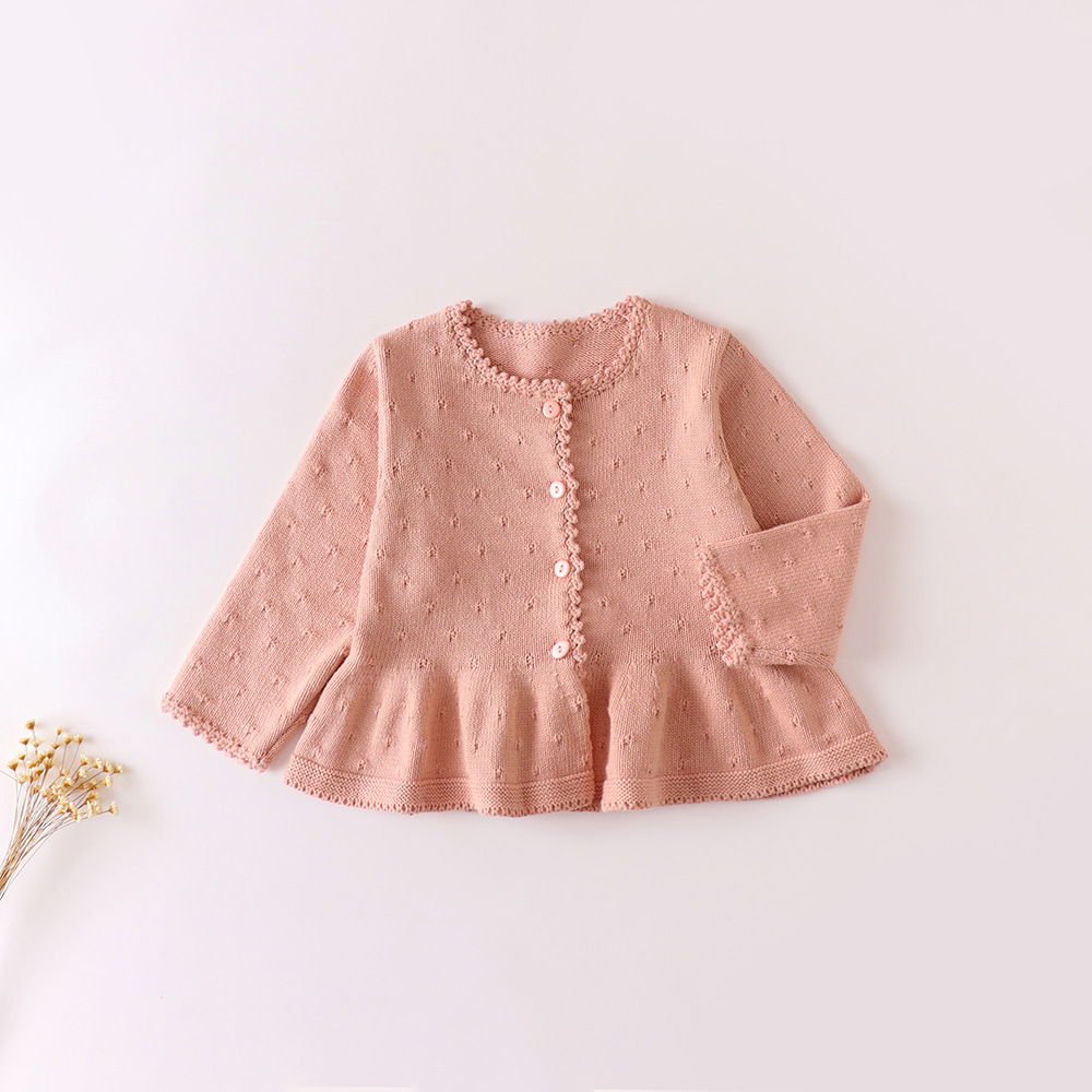 2025 봄 가을 신상 유아 니트 가디건 여아용 달콤한 프렌치 스타일 레이스 스웨터 코트