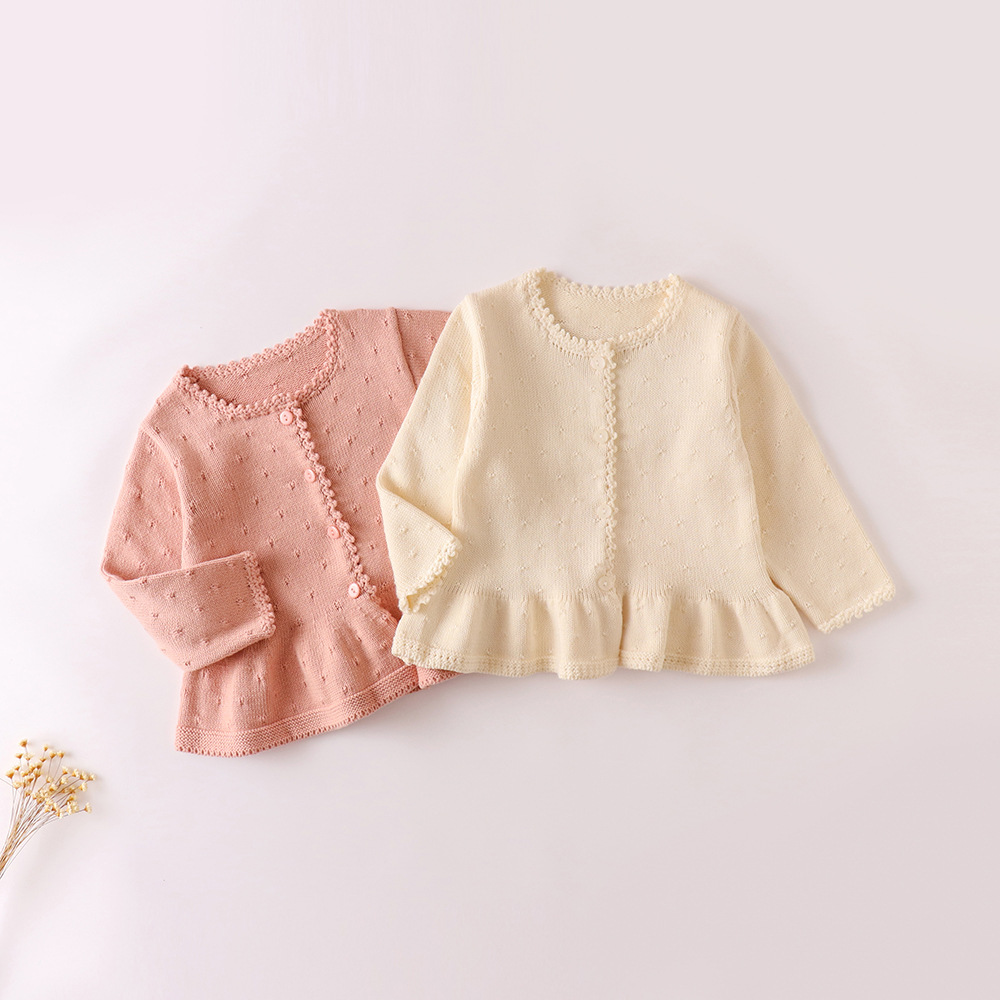 2025 봄 가을 신상 유아 니트 가디건 여아용 달콤한 프렌치 스타일 레이스 스웨터 코트스토어 가기