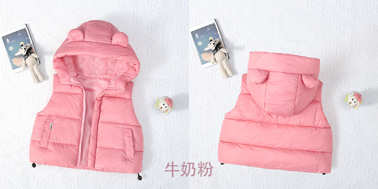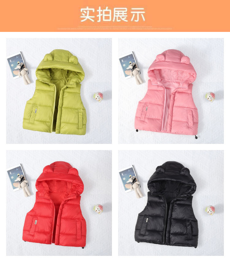 어린이 양복 조끼 후드 소년 소녀 봄 가을과 겨울 면화 유치원 아기 귀여운 귀 양복 조끼를 입고스토어 가기