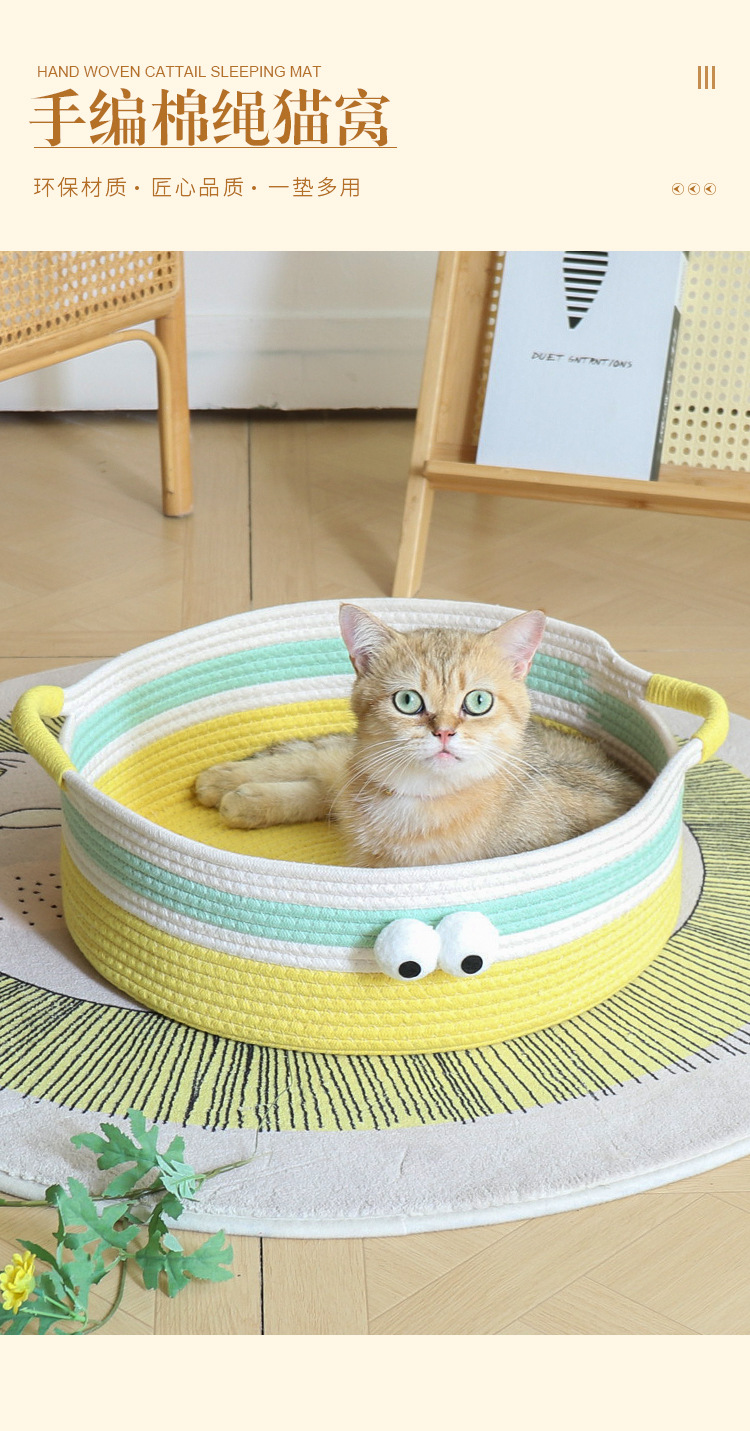 등나무 고양이 둥지 큰 눈 귀여운 고양이 해먹 여름 시원한 둥지 면화 밧줄 짠 고양이 애완 동물 둥지 고양이 침대 잠자는 둥지 둥지스토어 가기