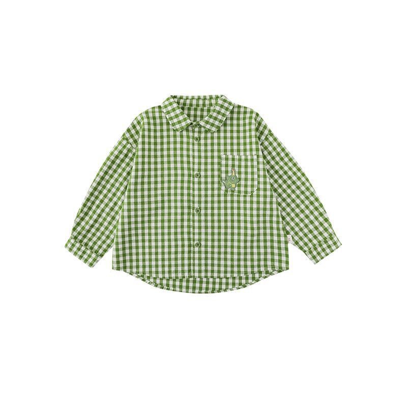 Wurib, 소년의 디지털 인쇄 패치 자수 표준 원사 염색 컬러 체크 무늬 셔츠 가을 어린이 잘 생긴 셔츠