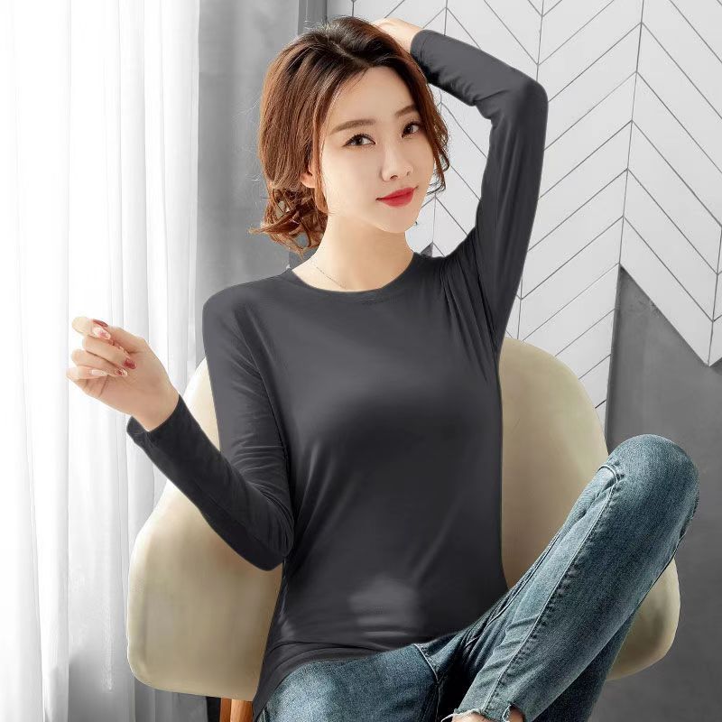 폭발 모달 [96% 비스코스, 4% 스판덱스] 긴팔 티셔츠 여성용 가을 새 느슨한 조커 코트