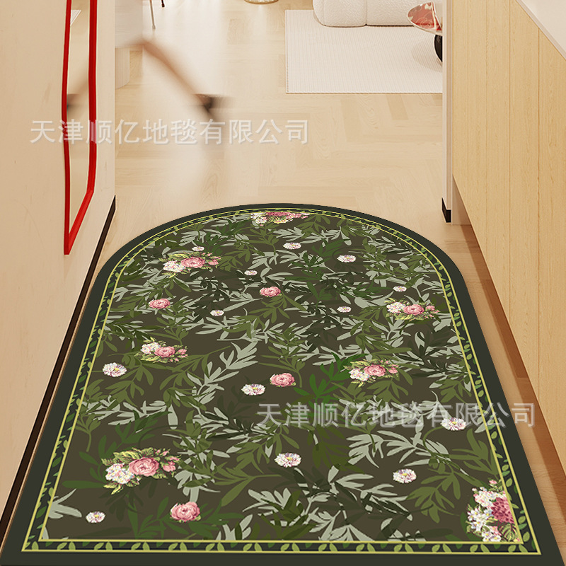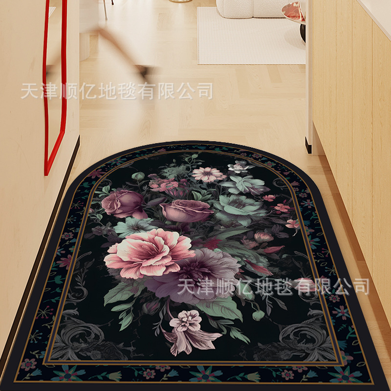 미국 스타일의 꽃 실크 링 바닥 매트 고급 감각 더러운-저항하는 도어 도어 커트테이블 착용 방지 슬립 매트 가정용 입구 도어 바닥 매트