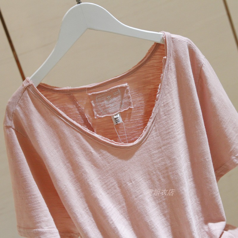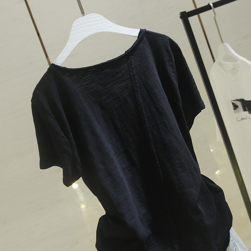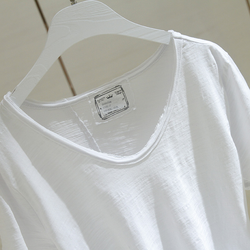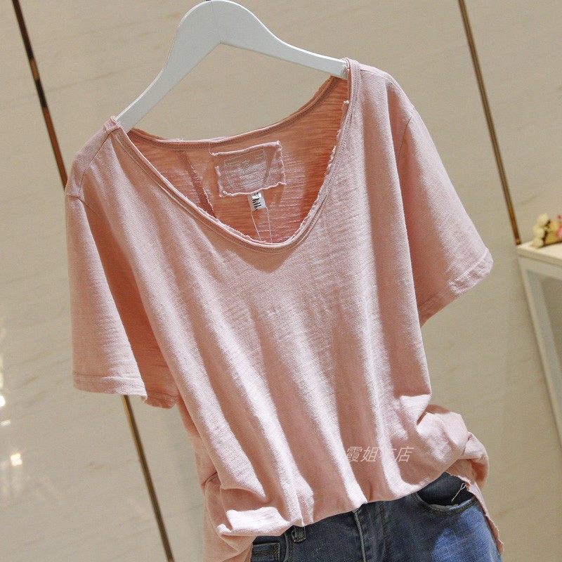 2023 년 여름 새 한국식 퓨어 화이트 반팔 티셔츠 여성용 모직 V 넥 슬럽 코튼 루즈 슬리밍 반소매 탑스토어 가기