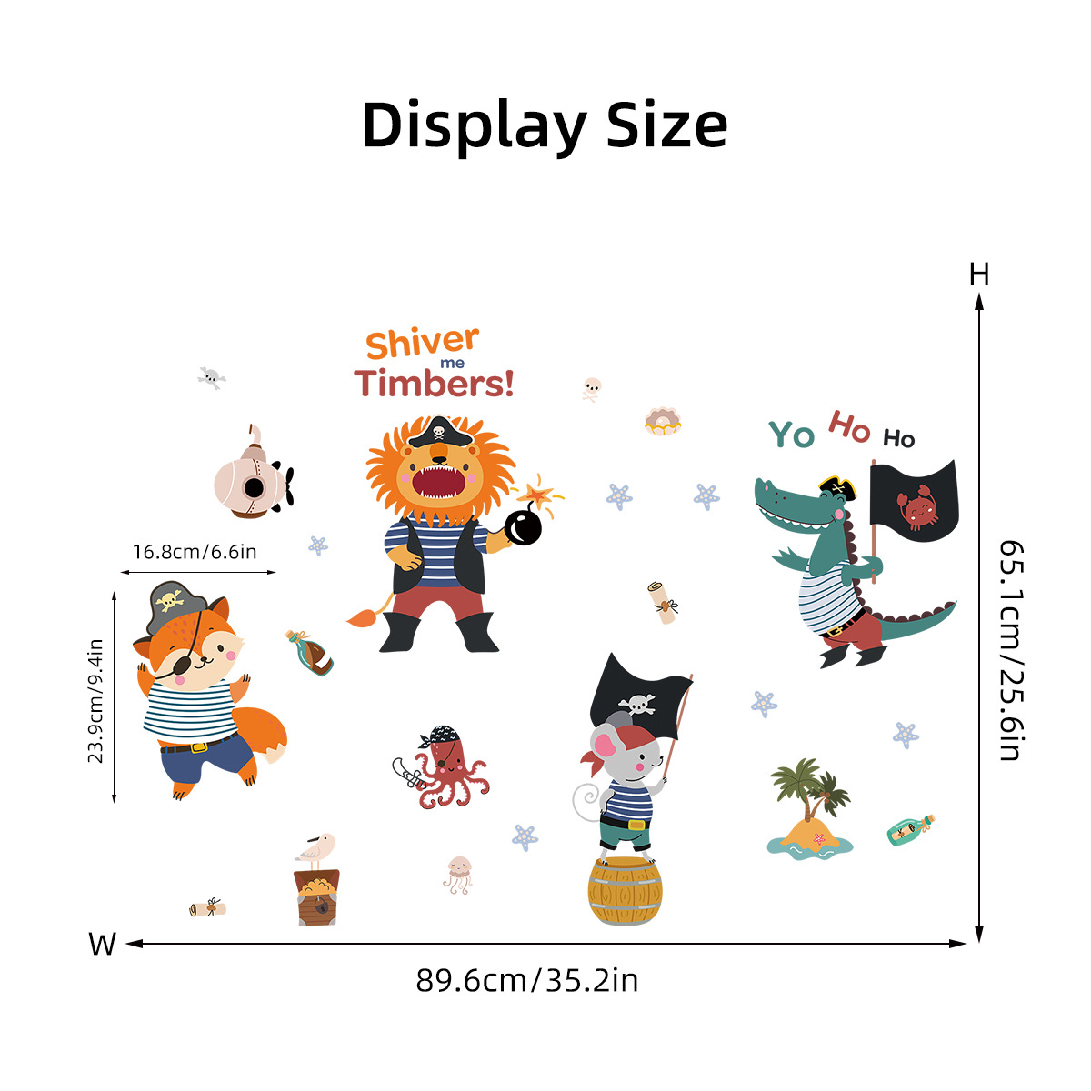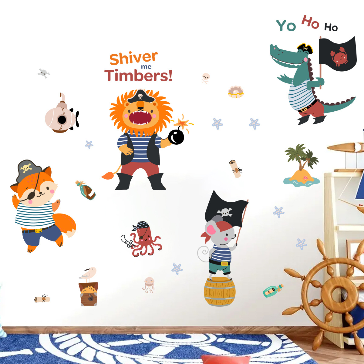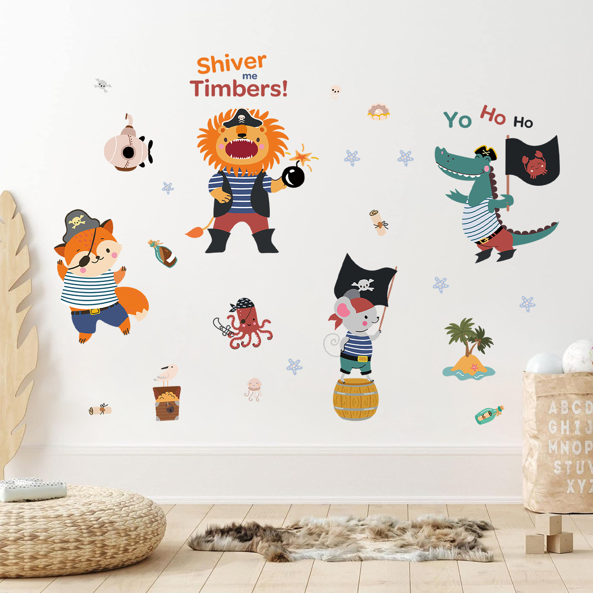 만화 귀여운 작은 동물 해적 자기 접착 벽 스티커 Ins 어린이 방 거실 침실 장식 스티커 BR0835F