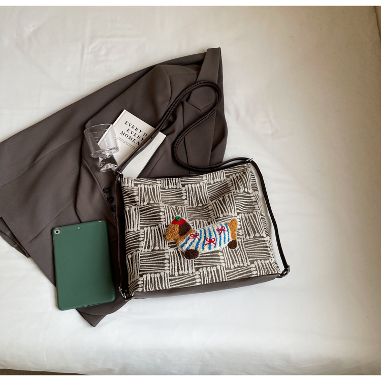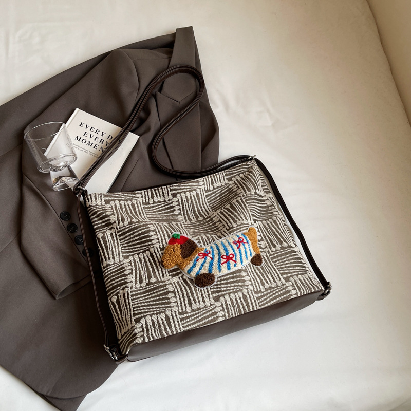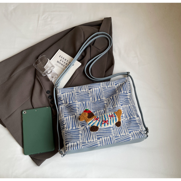 언더암 캔버스 가방 서양식 줄무늬 귀여운 만화 어깨 가방 작업 가방 대용량 여성용 배낭