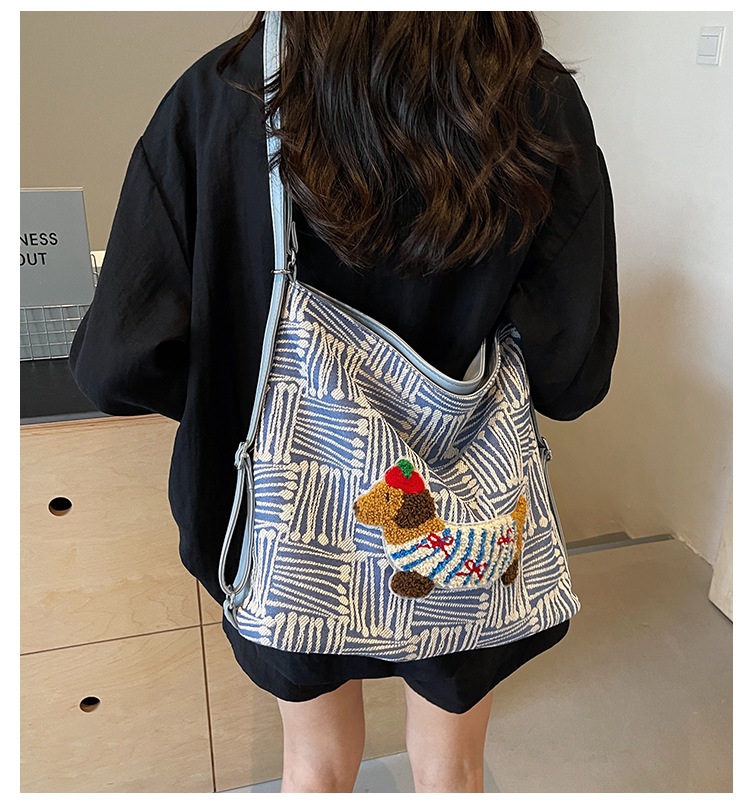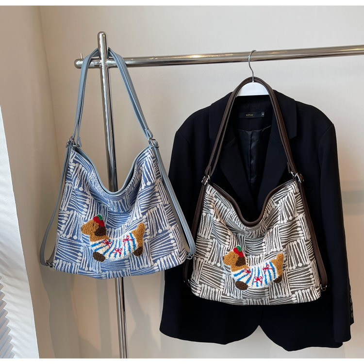 언더암 캔버스 가방 서양식 줄무늬 귀여운 만화 어깨 가방 작업 가방 대용량 여성용 배낭스토어 가기