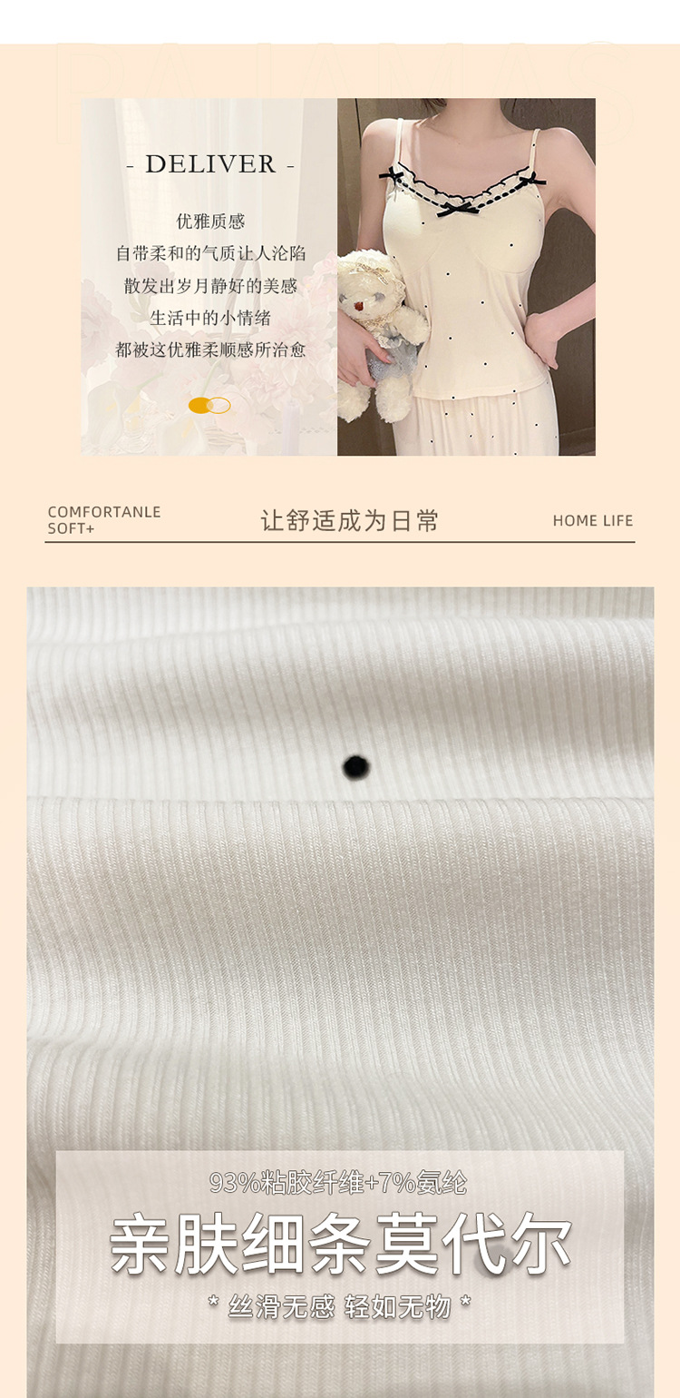 봄, 가을 폴카 도트 프린트 모달 긴팔 잠옷, 고급스럽고 가벼운 럭셔리 홈웨어, 피부 친화적이고 드레이프한 여성용 3피스 세트