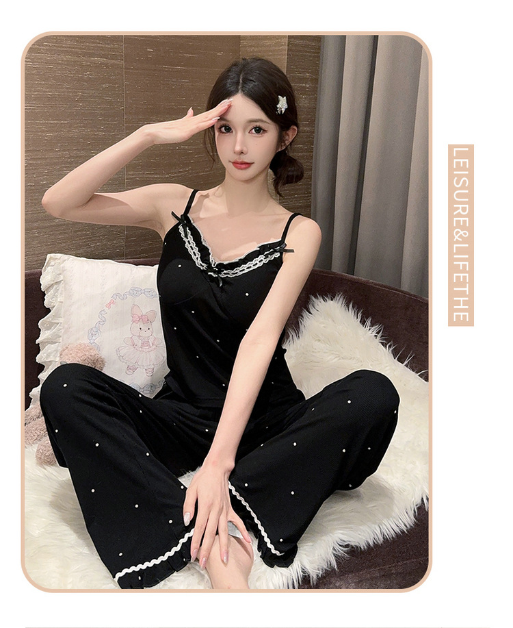 • D85303 3종세트(가슴패드 포함) 블랙 도트무늬
