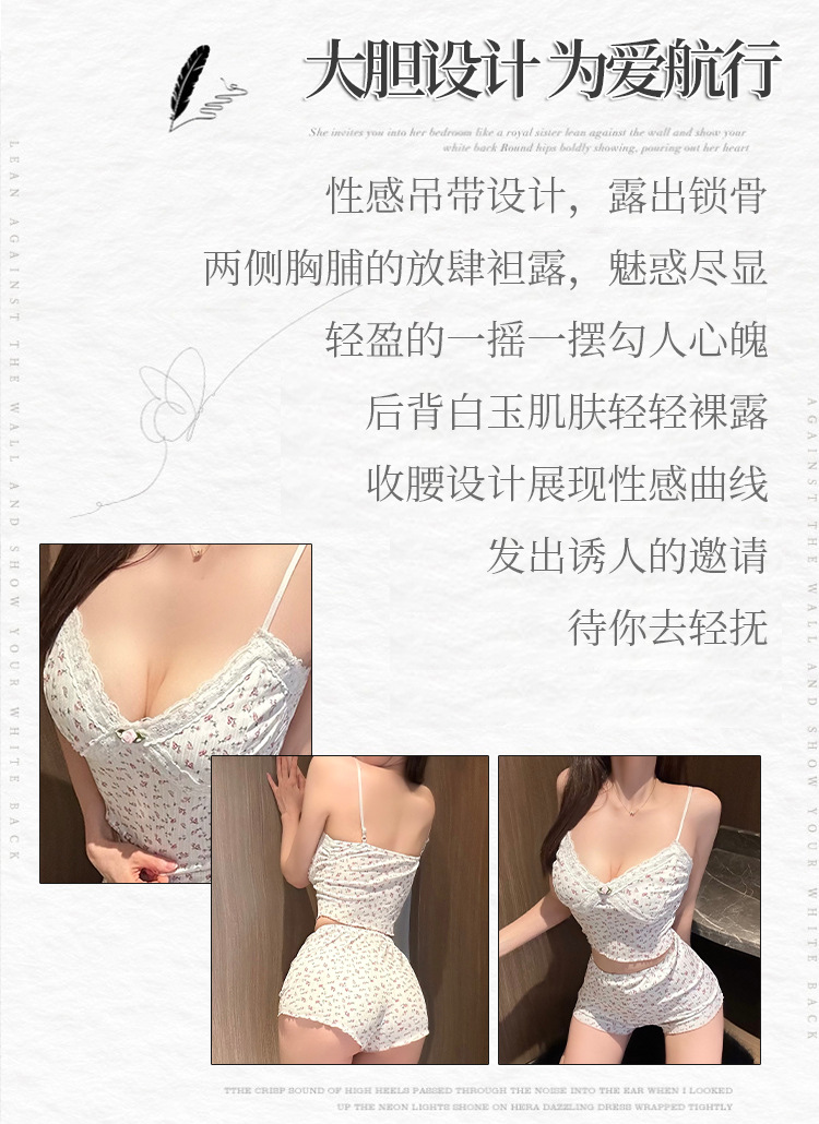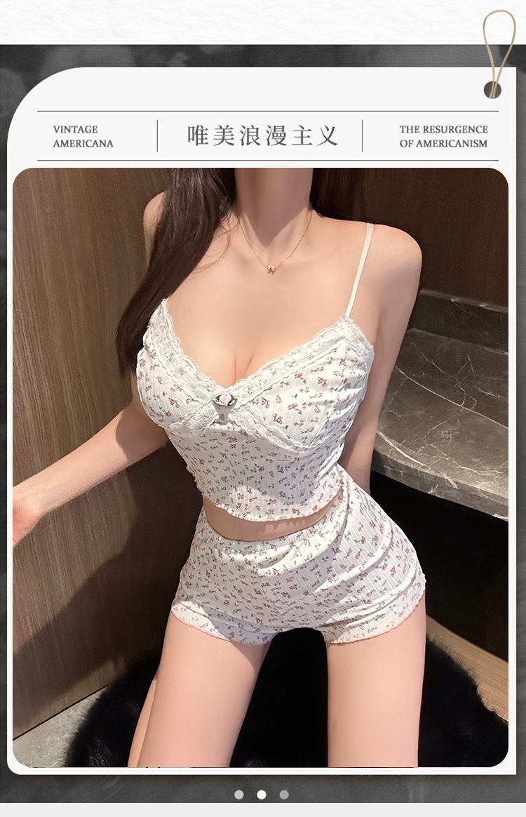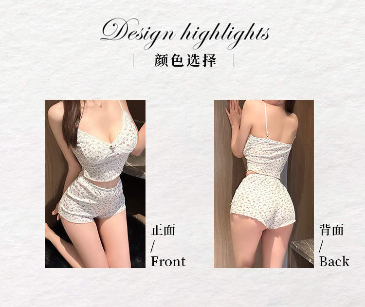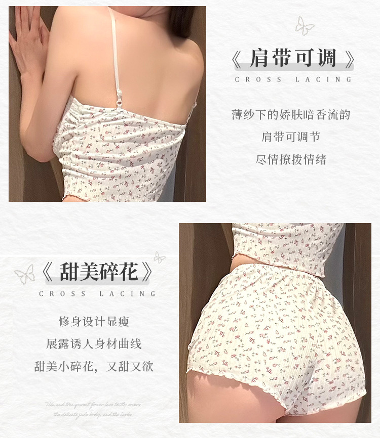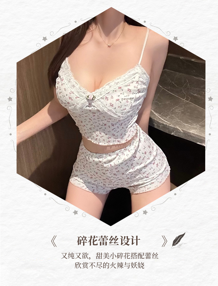 프랑스 달콤한 작은 꽃 섹시한 잠옷 세트 여름 순수한 욕망 슬링 반바지 섹시한 속옷 유니폼스토어 가기