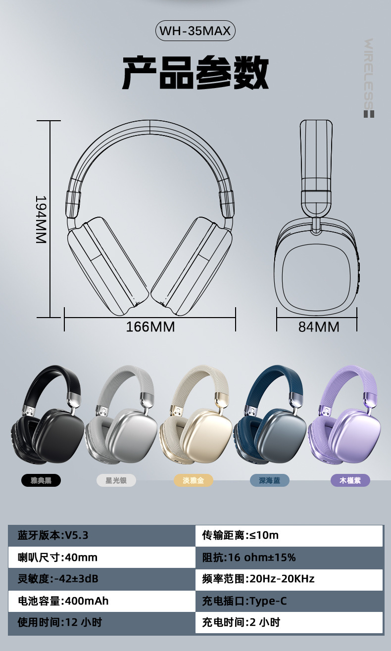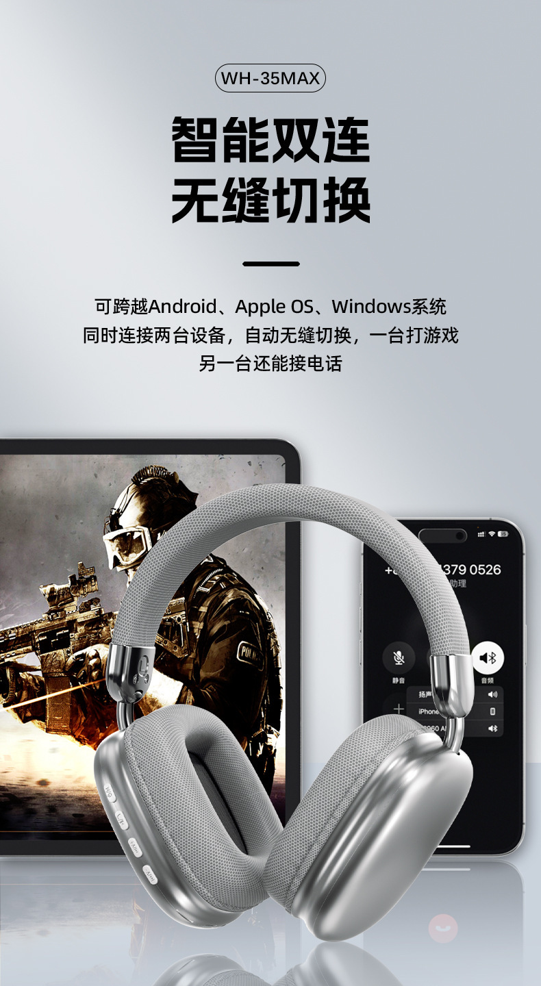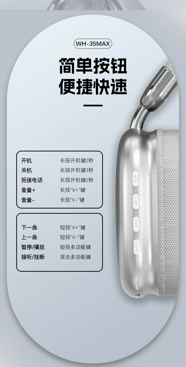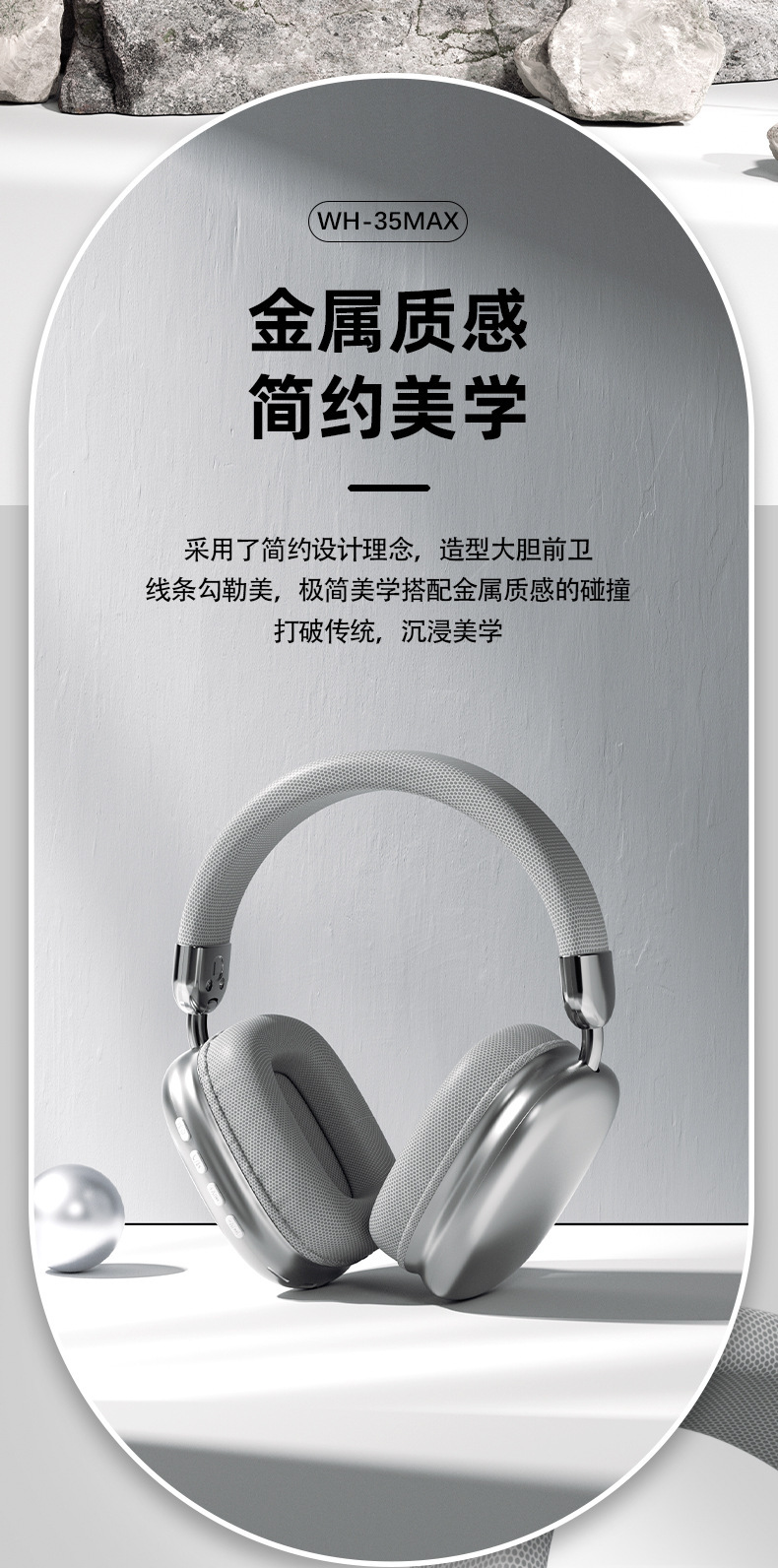 국경 간 새로운 헤드폰 WH35Max 헤드폰 간단한 무선 블루투스 헤드폰 머리카락스토어 가기