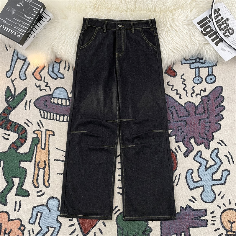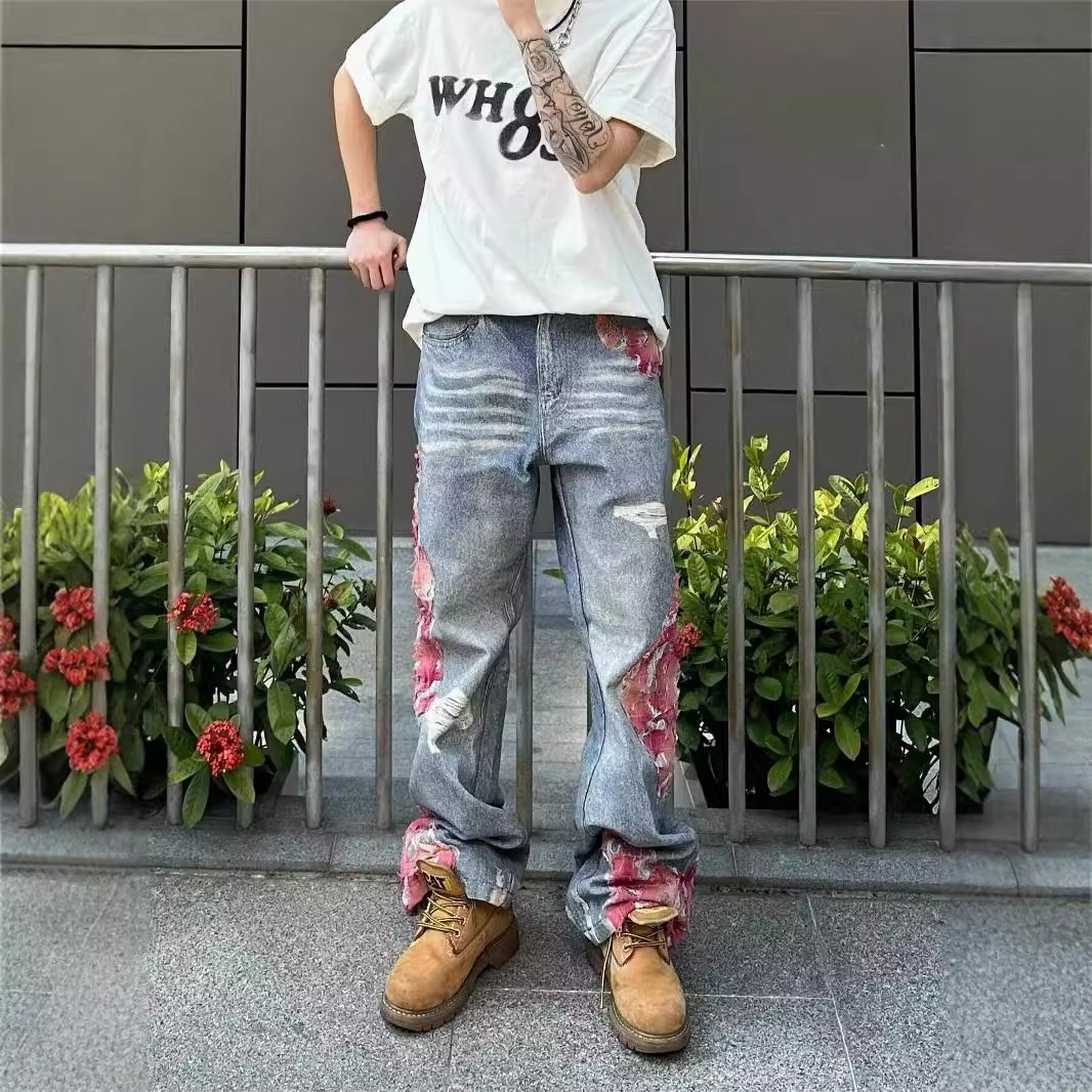디자인 센스 펑크 스티칭 청바지 남성 BF 게으른 스타일 2024 여름 얇은 미국 스타일 하이 스트리트 마이크로 혼 바지스토어 가기