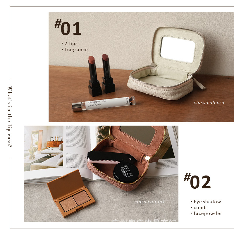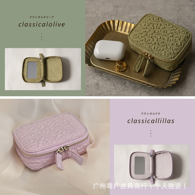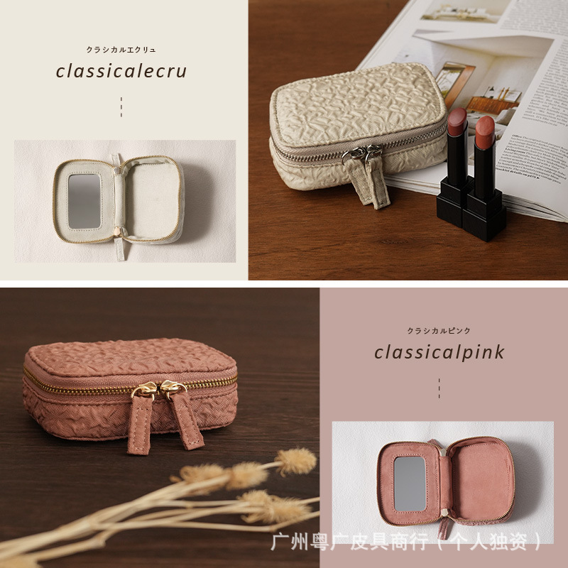 롯데 핫 셀러 엠보서 pu 패션 여성 화장품 가방 소형 다기능 휴대용 립스틱 거울 여성용 작은 사각형 가방