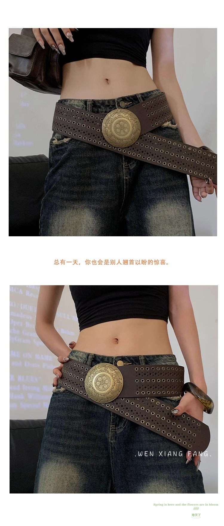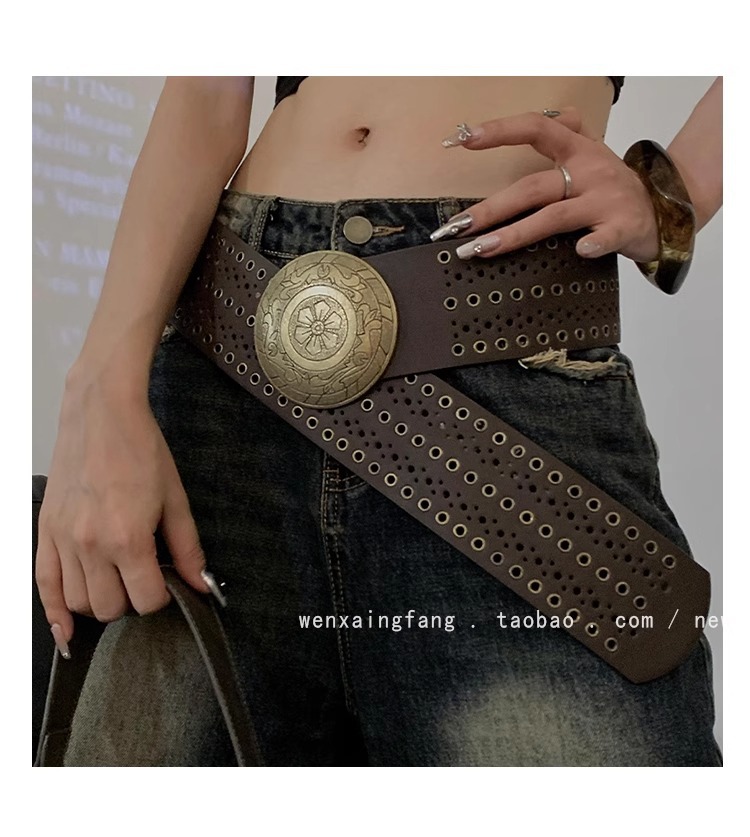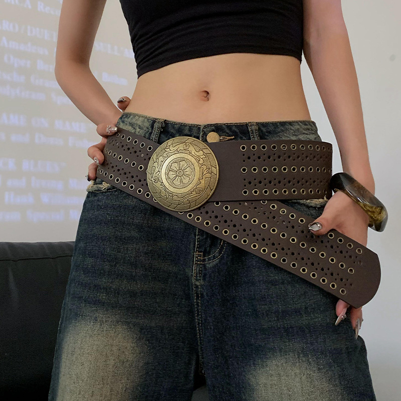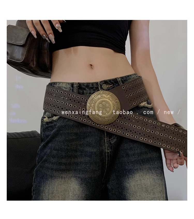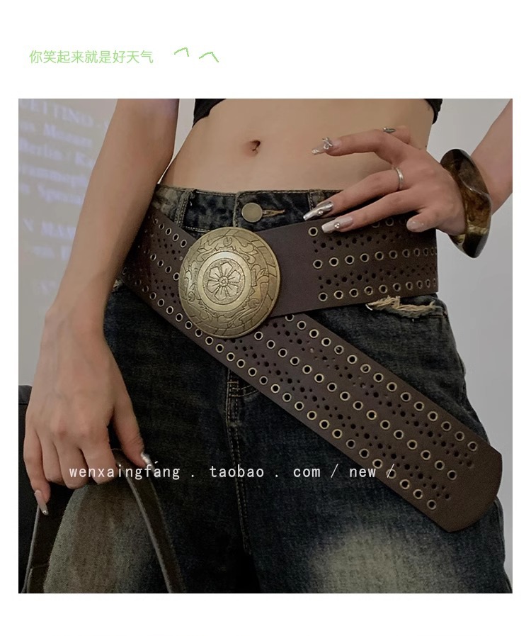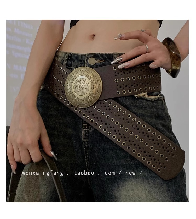 미국 레트로 웨스턴 데님 리벳 할로우 벨트 여성의 2024 새로운 청바지 패션 올 매치 벨트 트렌디스토어 가기