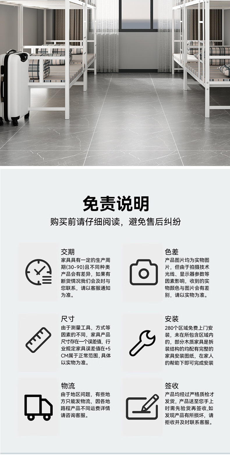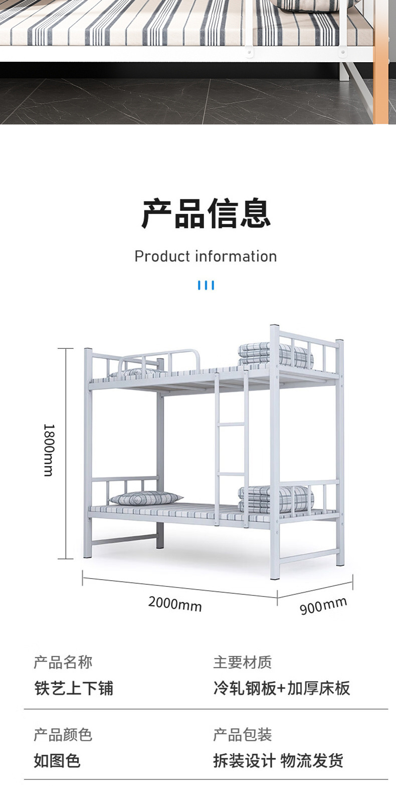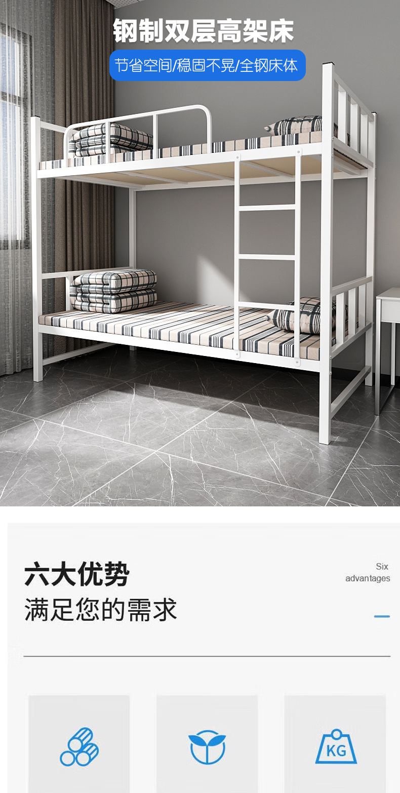 철제 건설 현장 이층 침대, 학생 및 직원 기숙사용 간이 싱글/더블 튜브 침대